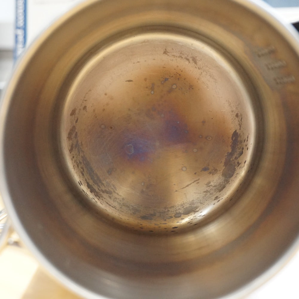 使用感があり、底面には直火によるステンレスの変色もございますが、 仕様に支障のある変形や破損、穴などはございません。 当店にて洗浄後、アルコール消毒を行っております。 |