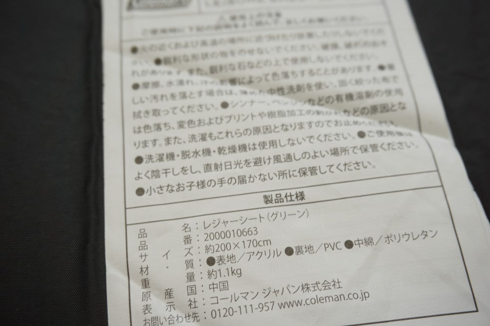 商品説明 | コールマンのレジャーシートです。 広げてた際の大きさは200cm×170cmで中綿入りです。 |