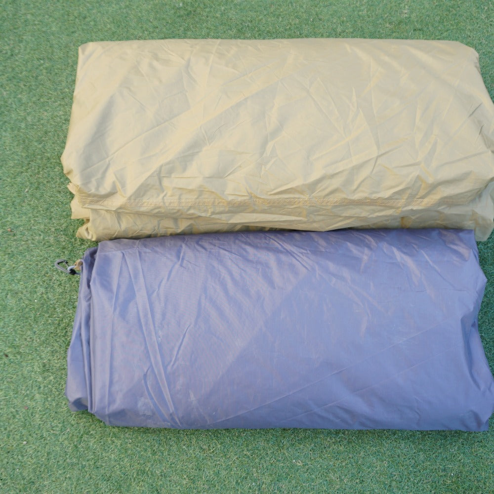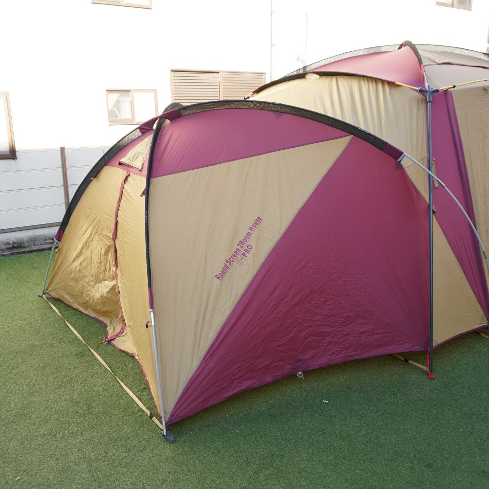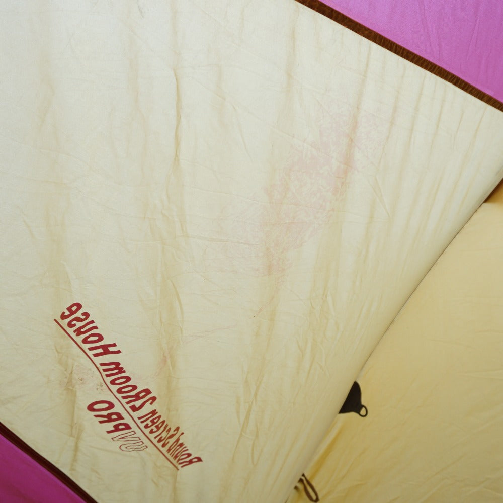 組立確認済みです。 年数の経過しているアイテムのため、幕体に汚れや一部色移りなどがございます。 フレームにも若干の変形が確認できましたが、組立・使用に支障のある変形ではございません。 スチールポール使用で重量もありますので、出来るだけ2人での組立てを推奨いたします。 |