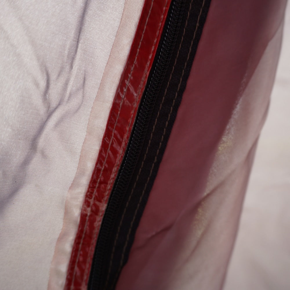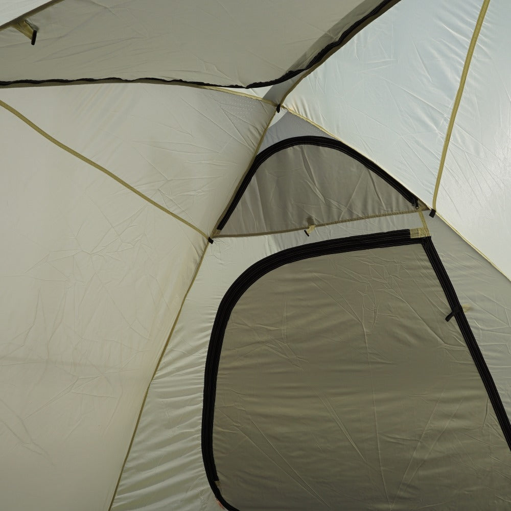古いアイテムですので、経年劣化によりフライシート裏側にベタツキが見られます。 インナー床面のベタ付きや臭いはございません。 シームテープも浮きが見られます。 組立確認済みですが、ベタツキも組立に支障があるほどではございません。 |
