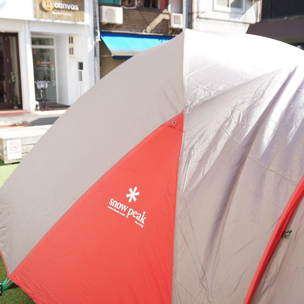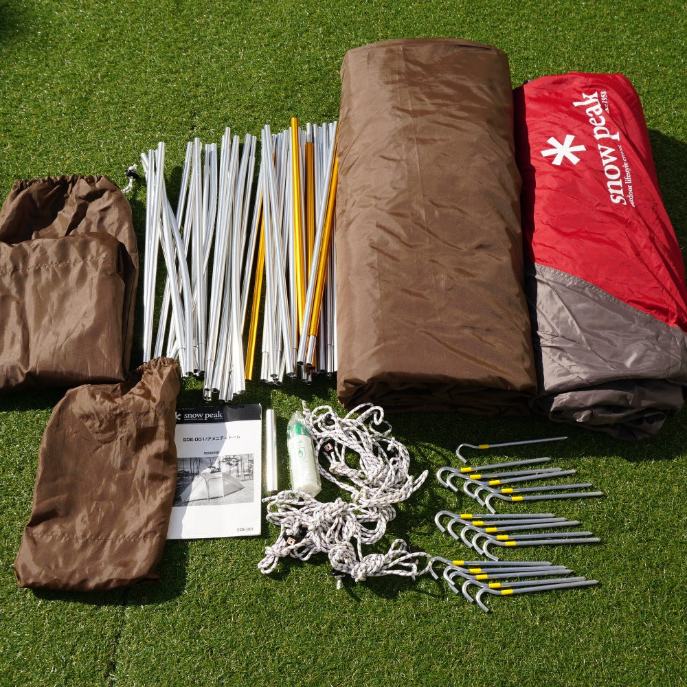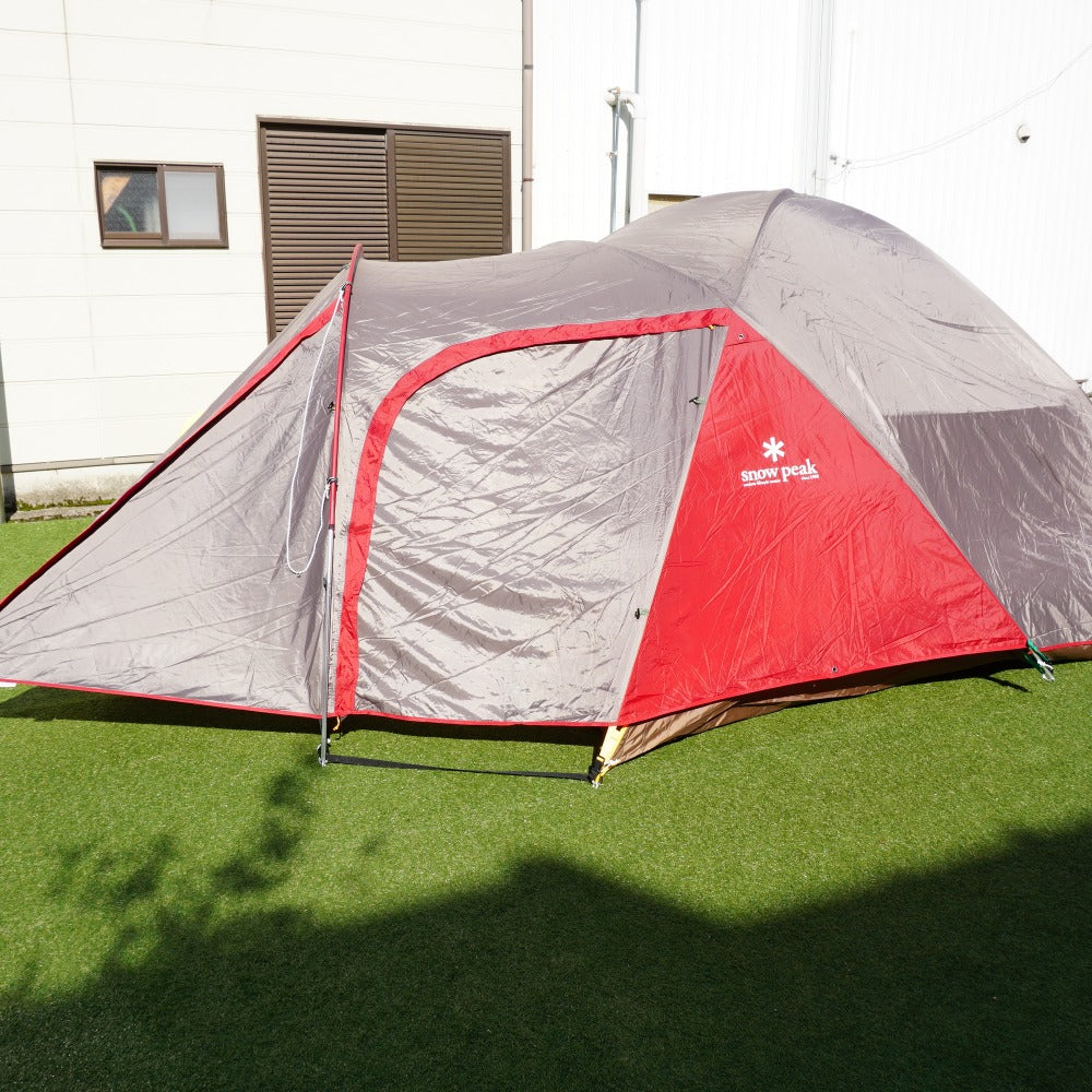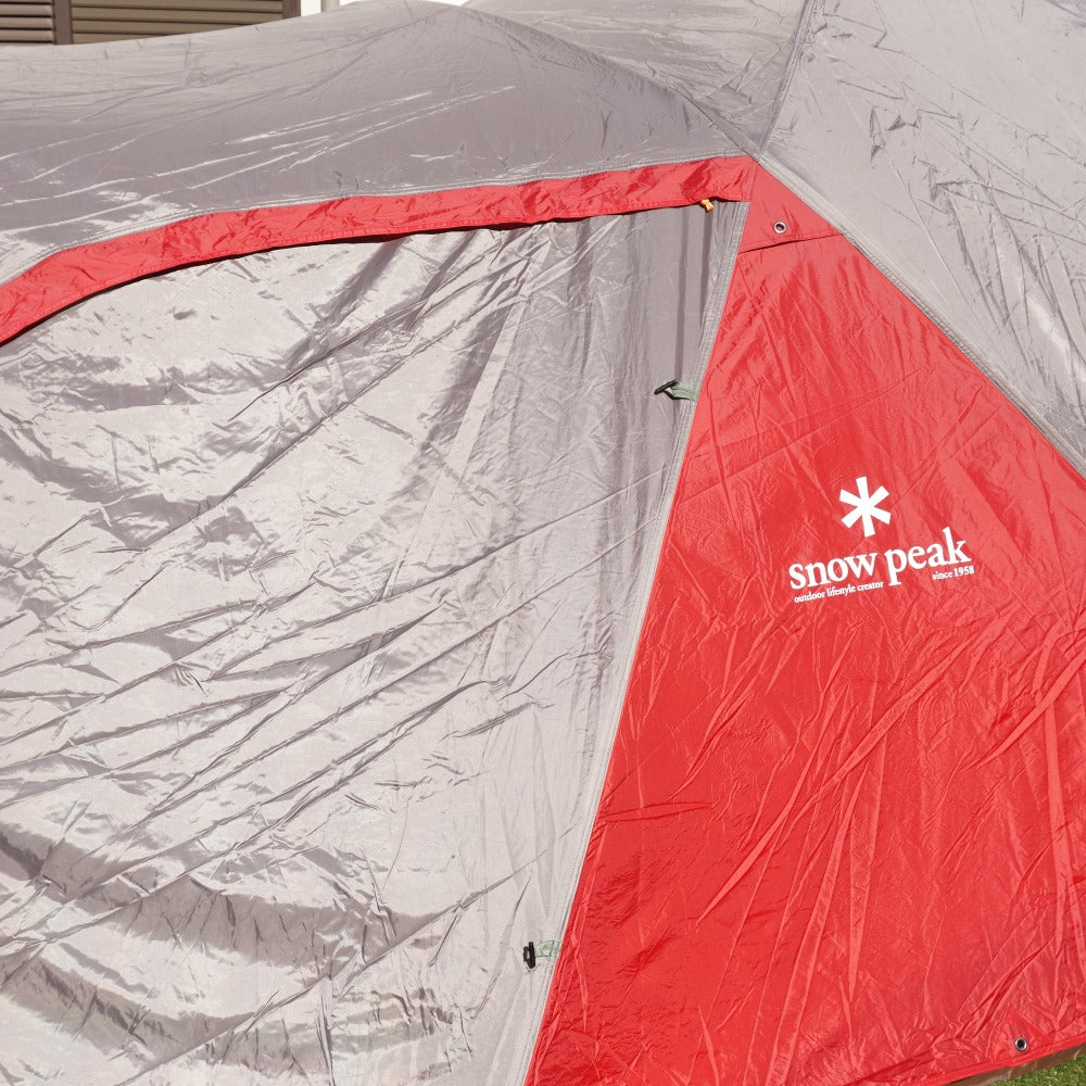 商品説明 | スノーピークの定番テント、アメニティドームM/SDE-001です。 旧品となり、今では珍しいグレー&エンジカラーのアイテムです。 4~5人用ですが、家族4人や大人2人でゆったり過ごせるサイズ感です。 |