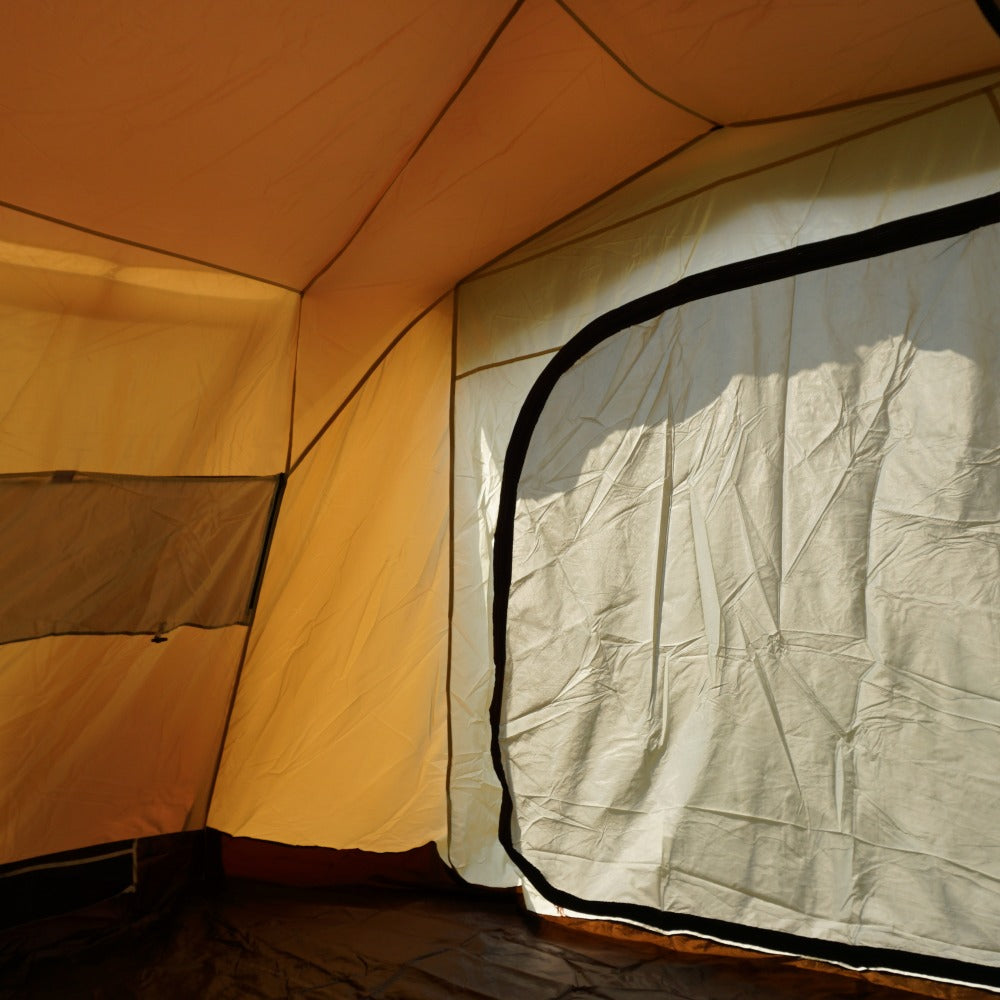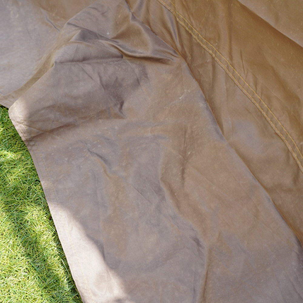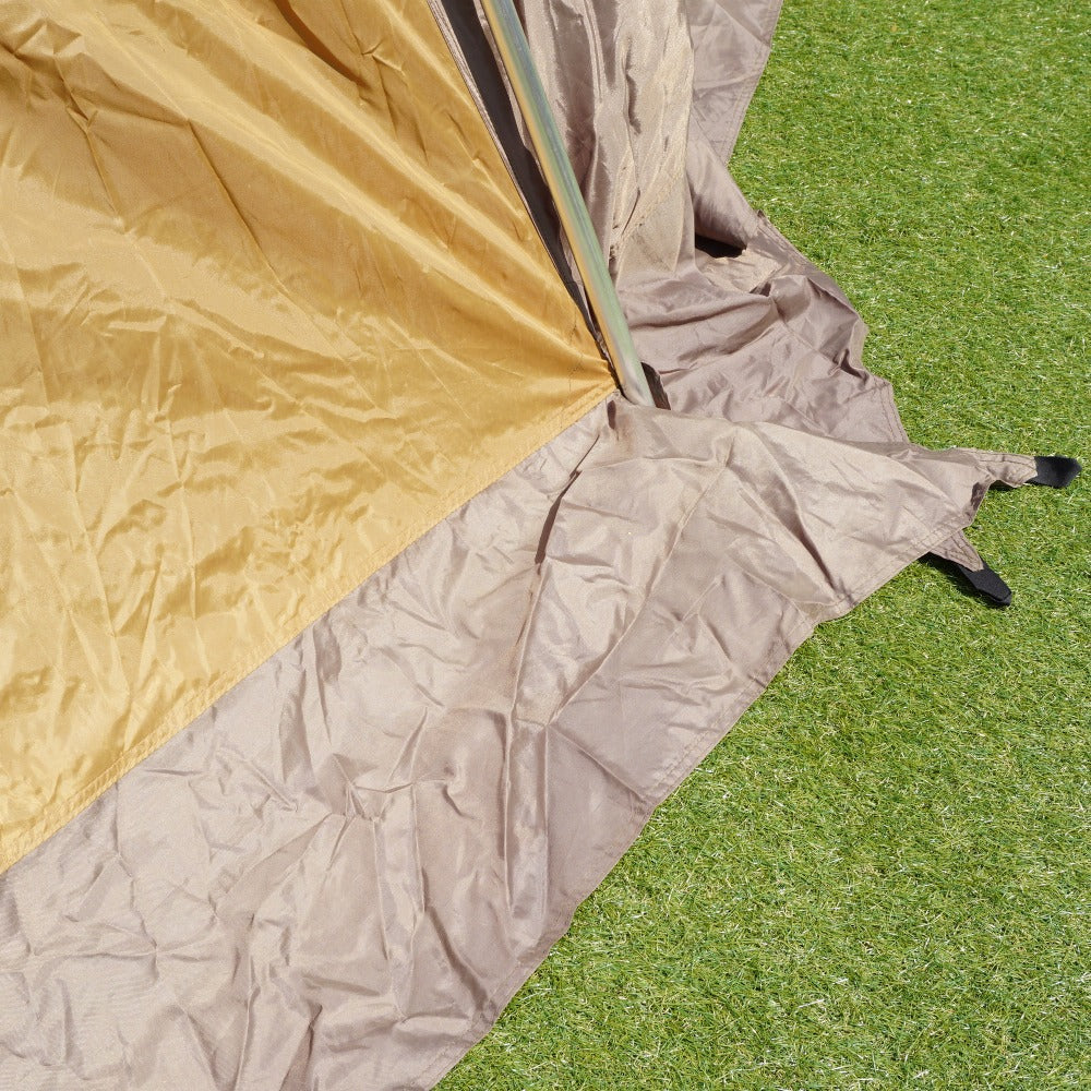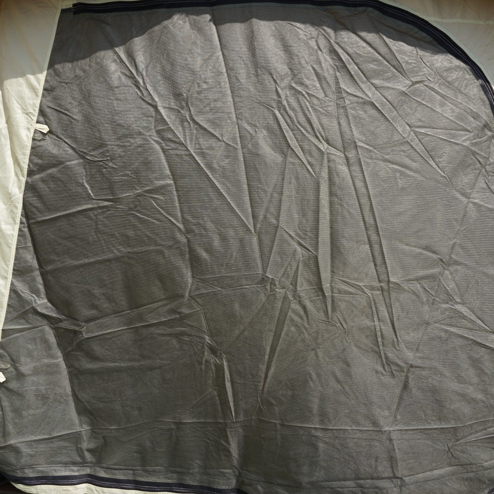 古いアイテムのため、幕体内側のコーティングが経年劣化によるベタツキが発生しています。 また、インナーテントフロアも少々ベタツキを感じます。 シームテープなども劣化による剥がれが生じていますが、幕自体の穴や目立つキズ、破れなどはございません。 接地するスカートなども綺麗です。 フレームなどは使用に支障のある変形や歪みはありません。 |