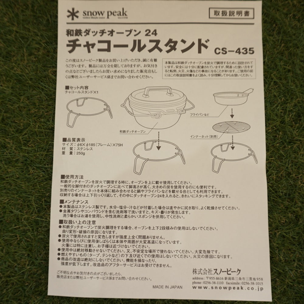 【廃番】美品 スノーピーク(snowpeak)和鉄ダッチオーブン24 フルセット CS-430/-435/-436/430BR 調理器具 インナーネット・収納ケース・チャコールスタンド