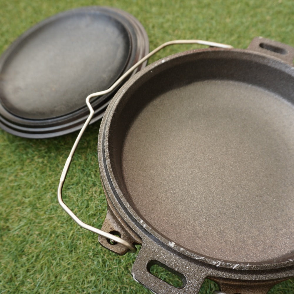 ポット、スキレット、蓋の3点セットで調理の幅も広がります。