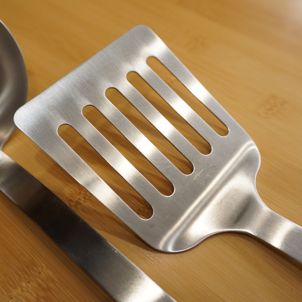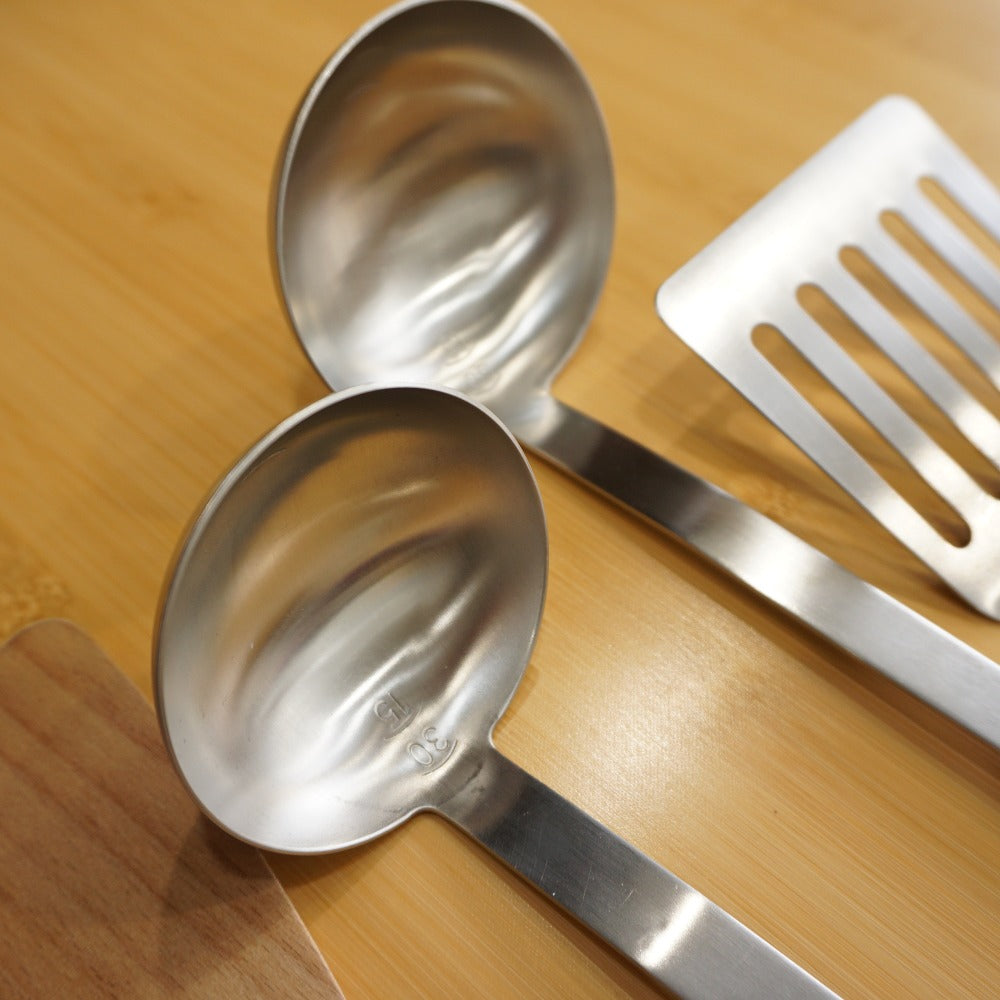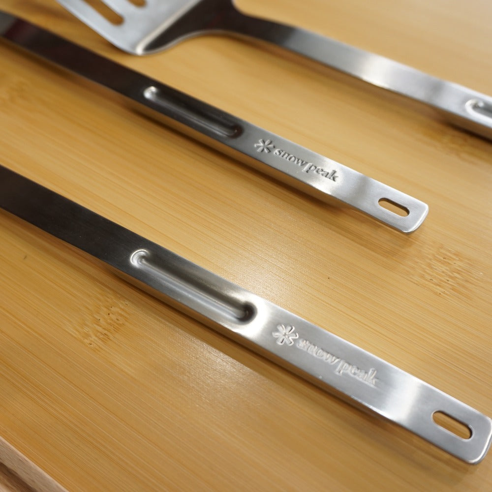 商品説明 | スノーピークの廃盤レア商品、スタッキングキッチンツールSET/CS-180です。 お玉大、お玉小、フライ返し、木ベラ、菜箸のセットです。 ステンレスアイテムの柄は継なぎ目のないモナカ構造で、握りやすく衛生的。 お玉には15cc、30ccの便利な目盛り付です。 メッシュカバー付ネオプレーンの収納ケースにスタッキングして収納することができます。 スタッキングしやすいように凹凸が付いています。 2020年に発売されるナイロン製のキッチンツールセットよりもデザイン性、機能性は優れているのではないでしょうか。 |