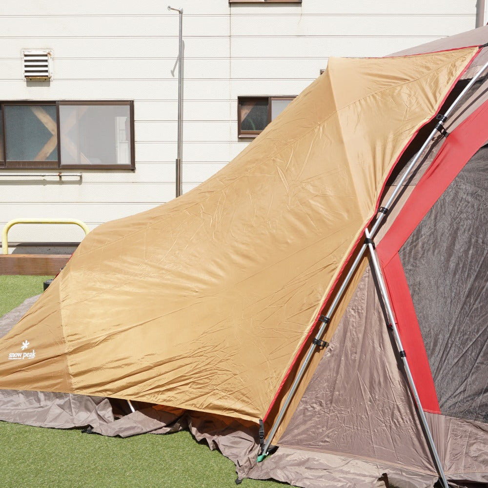 商品説明 | スノーピーク(snow peak)の定番シェルター「リビングシェル」用の専用オプション、 リビングシェル・インナーテント フルフライシート/TP-312IF です。 リビングシェルを寝室として使う場合に接続するインナーテントを フルカバーするフライシートとなります。 寒さ対策のためには必需品ですね。 ※画像に写っているリビングシェルと専用インナーテントは商品に含まれておりません。 |