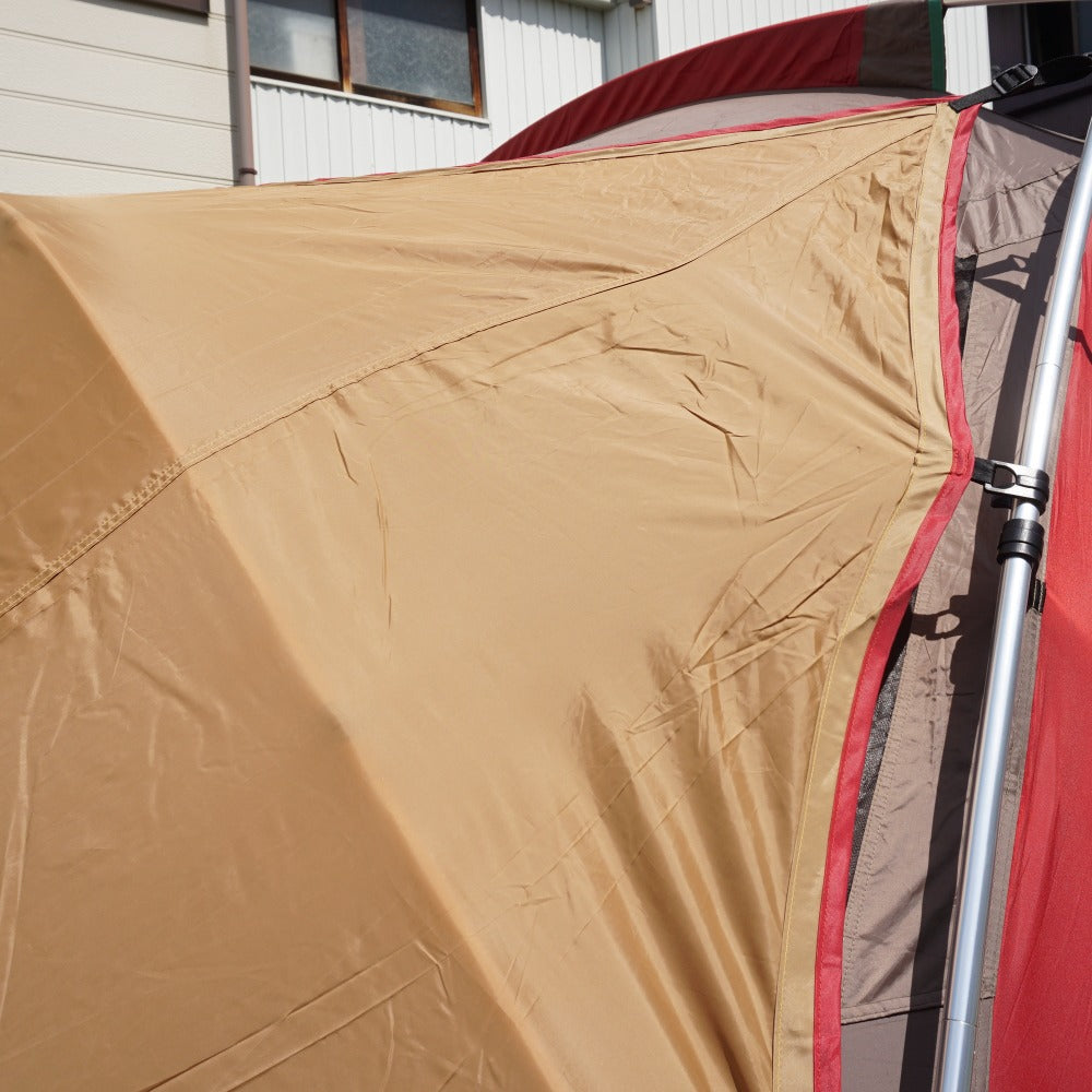 フライシートの裏面に、劣化による多少のベタつきと、コーティングの浮きなどありますが、 使用に支障ある程度ではなくインナーテントに被せる際もスムーズに被せることができました。 |