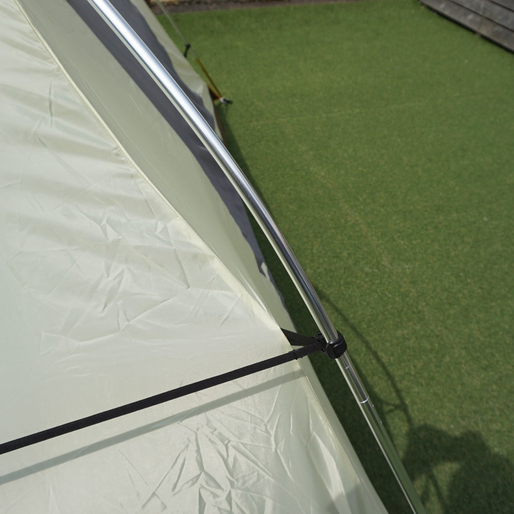 使用感があり、薄っすらとした汚れなどもございますが、 幕体のベタツキや使用に支障のある穴や破れなどはございません。 インナーテントのフレーム一カ所に歪みが見られますが、組立・使用上は問題ない程度です。 |