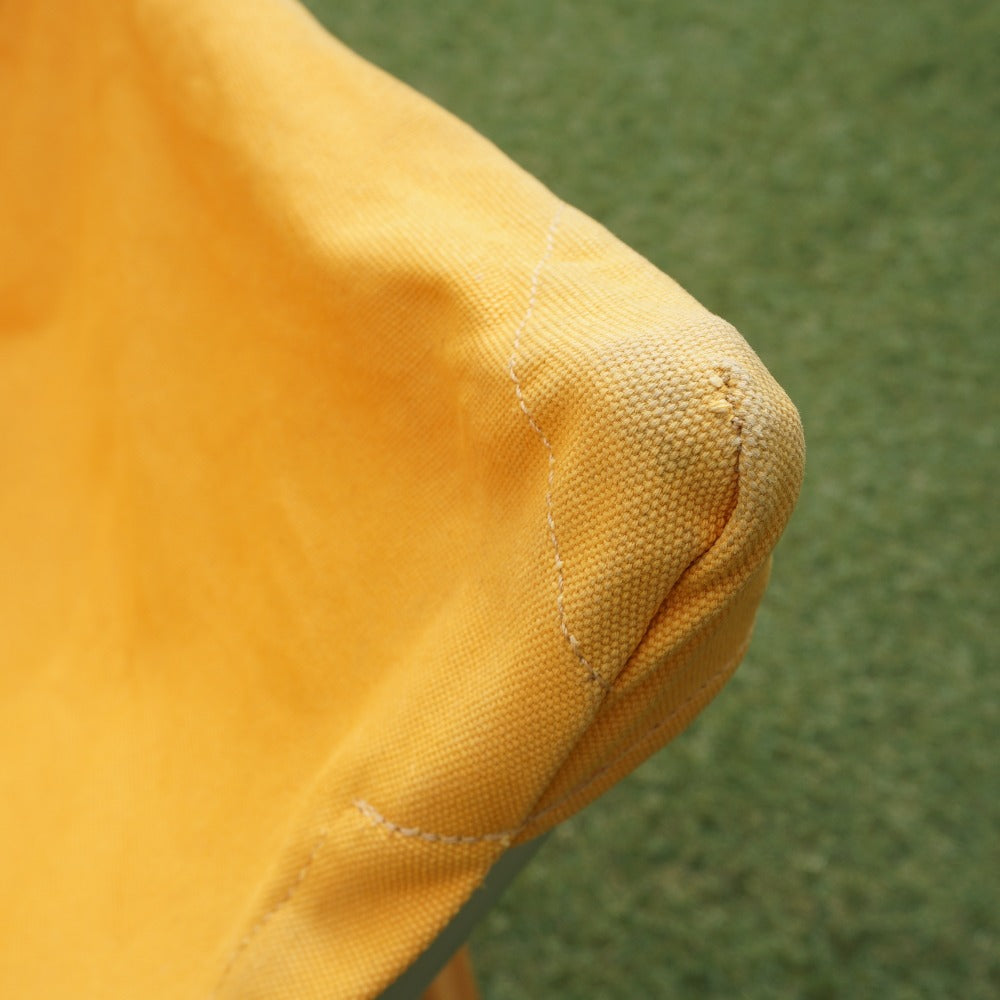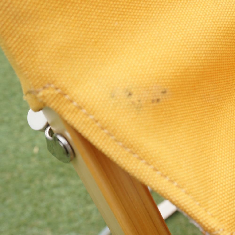 古いアイテムで使用感がございます。座布には汚れなども付着しています。 簡単に洗濯し乾燥させていますが、若干保管時の臭いが残留しております。 一度腰掛けてチェックを行っておりますが、長期保管品のため、 コットン地が劣化し弱くなっている場合がございます。 (もう一脚入荷しましたがそちらはコットン地が裂けてしまっておりました) |