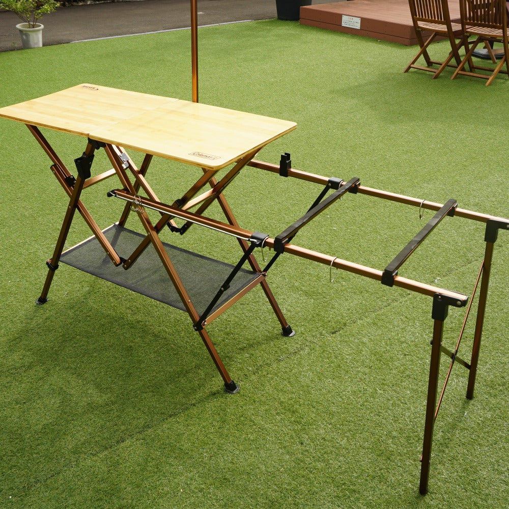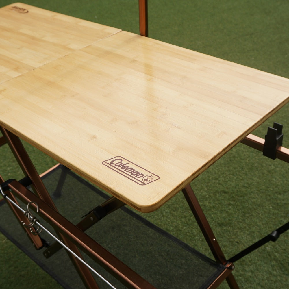 商品説明 | 天板を開くだけで脚も同時に開くワンタッチ簡単設営のキッチンテーブルです。 コールマンの最高峰シリーズコンフォートマスター。 使いやすいバーナースタンド一体型で、調理台の両サイドに取り付け可能なランタンポールが設置可能です。 右きき、左ききの方どちらにも対応 天板は竹集成材、フレームはアルミ製です。 ●使用時サイズ:テーブル/約170×50×83/183(h)cm 調理台/約100×45×83(h)cm バーナースタンド/約48×70×70(h)cm ●収納時サイズ:約50×12.5×82(h)cm ●重量:約9.4kg |