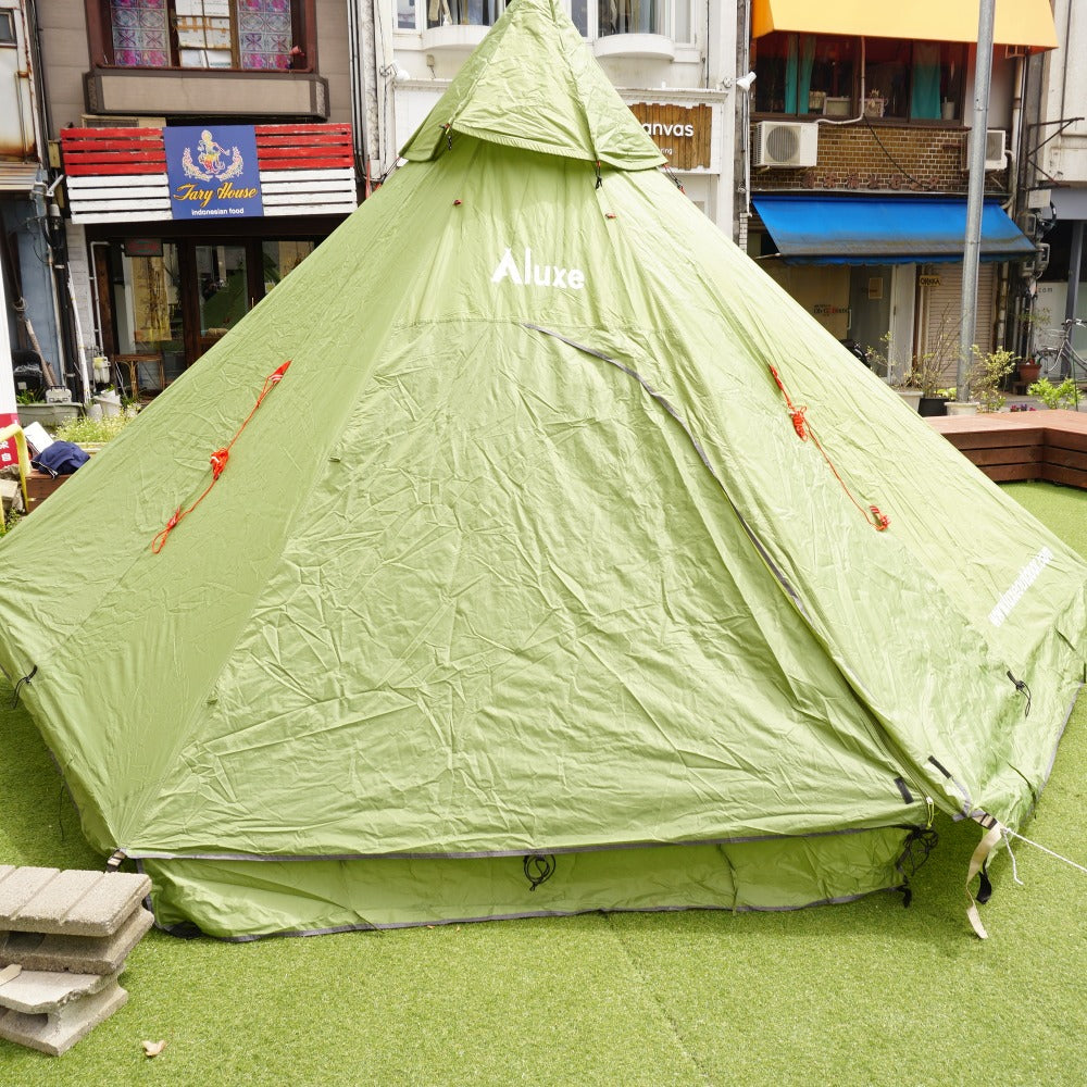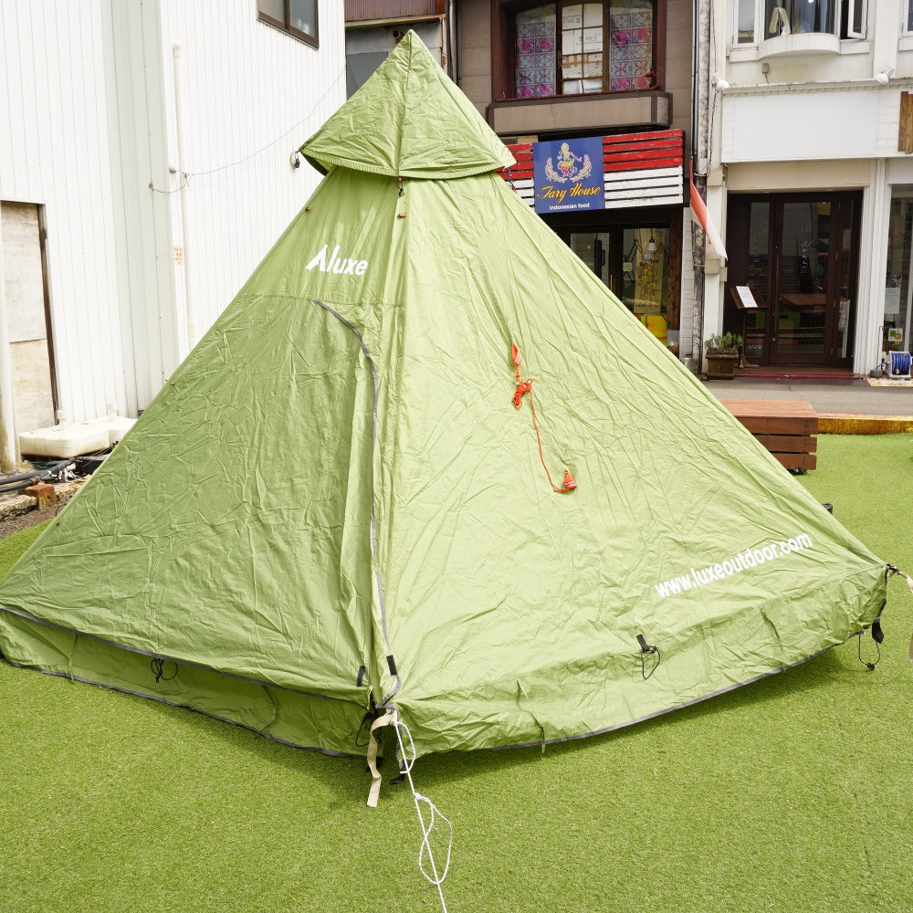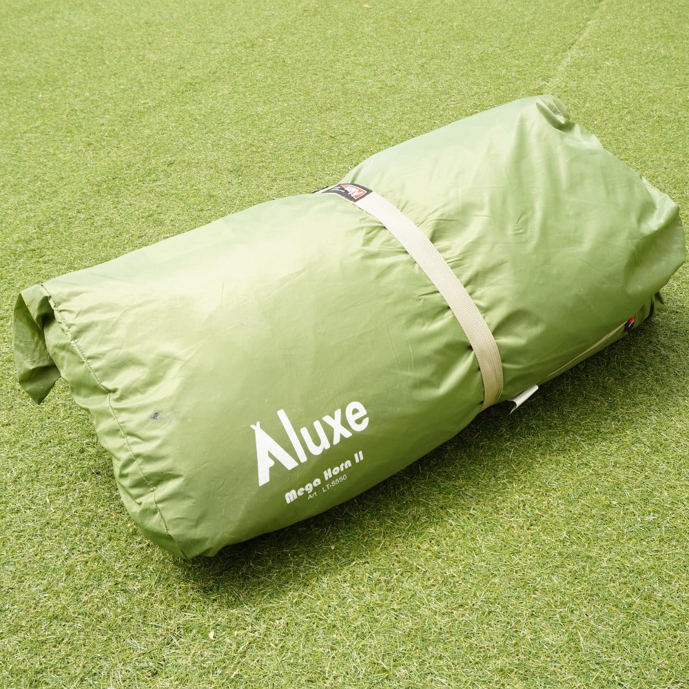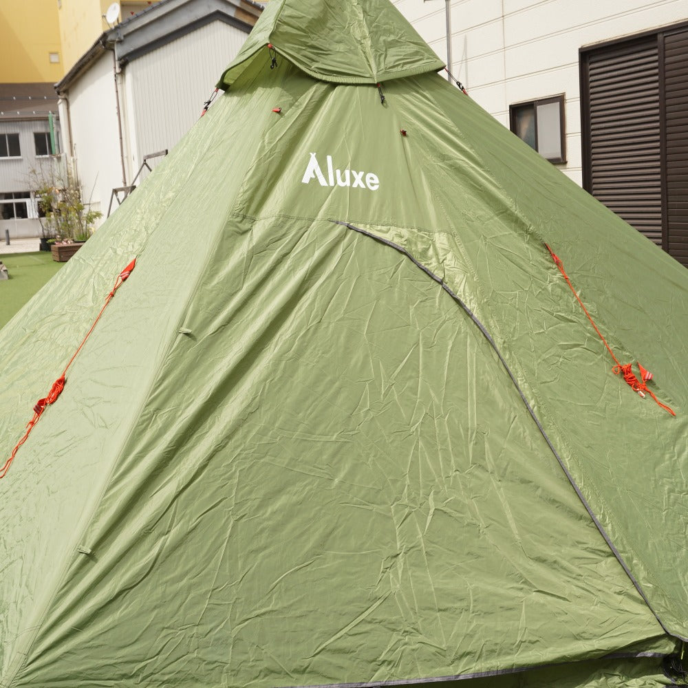 商品説明 | Luxeのモノポールテントである、 メガホーンⅡ&インナーテントのセットです。 2~5人用のワンポールテントです。 床面積が広く、出入り口が両サイドにあるので、 テントの出入りがしやすく、広々と過ごせます。 |