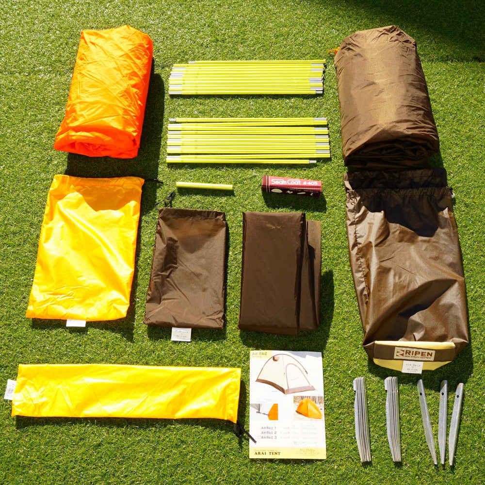 商品説明 | アライテント(ARAI TENT)のエアライズ3 アンダーシート付 です。 「エアライズ」は豊富なオプションを利用することで、 4シーズン、快適に過ごすことができるように設計されているテントです。 また、人が自分自身の力で移動する「人力移動」ができるように、 強度を保持しながら、軽量化されたコンパクトな作りになっています。 ・サイズ:間口185×奥行220×高さ115cm(3人用) ・重量:2070g(本体+フレーム+フライシート) ・収納サイズ:本体39×16φcm、フレーム38cm |