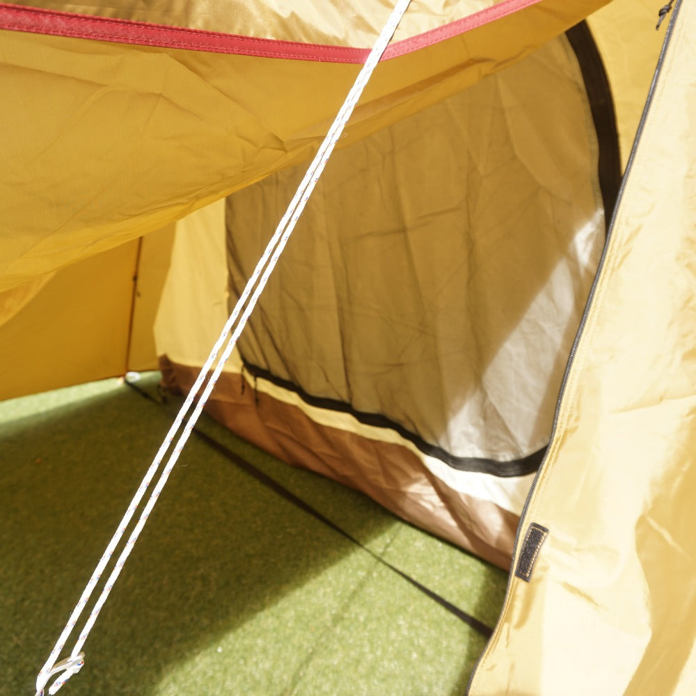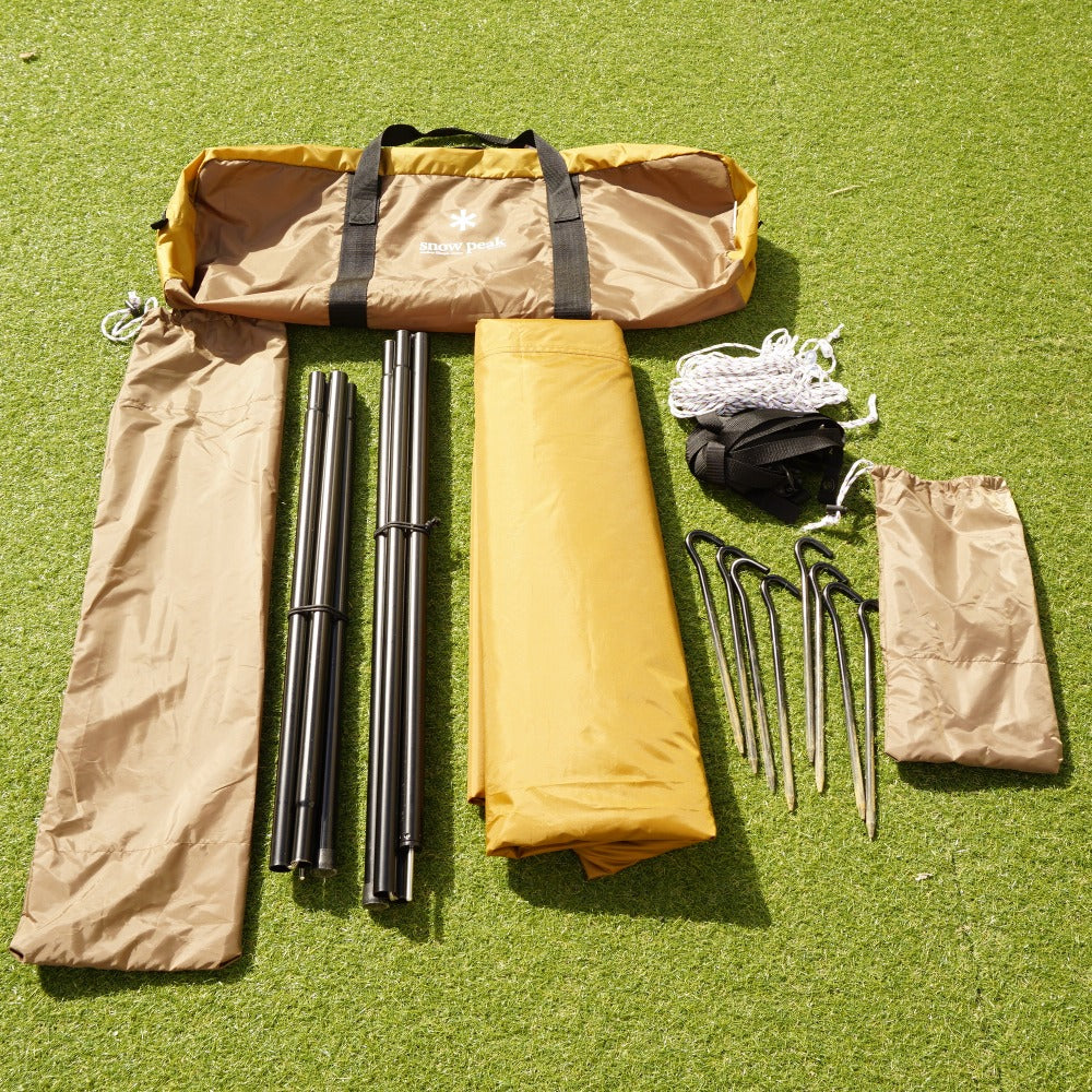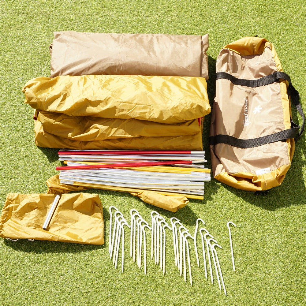 付属品 | 収納ケース 収納ケース、ロープ、ジュラペグ、スチールポール、スチールペグ、コネクションテープなど揃っていますが、説明書はございません。 |