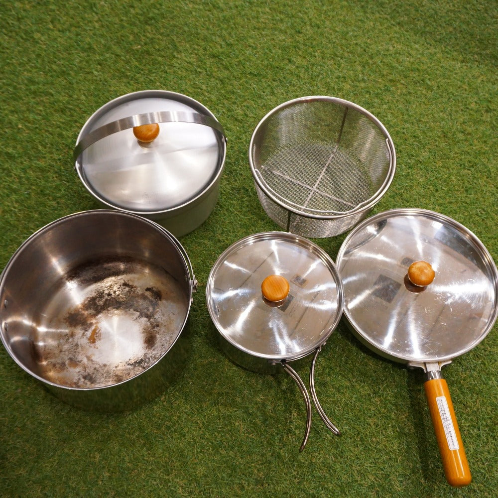 商品説明 | ユニフレームのクッカーセットです。 セット内容:ライスクッカーDX、フライパン、ステンレス大鍋、ステンレス片手鍋、メッシュバスケット ■サイズ: 収納時/約φ230×195mm |