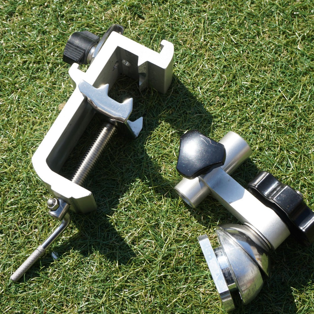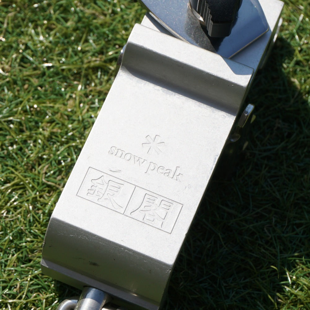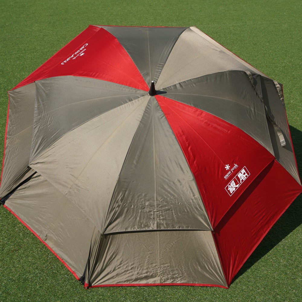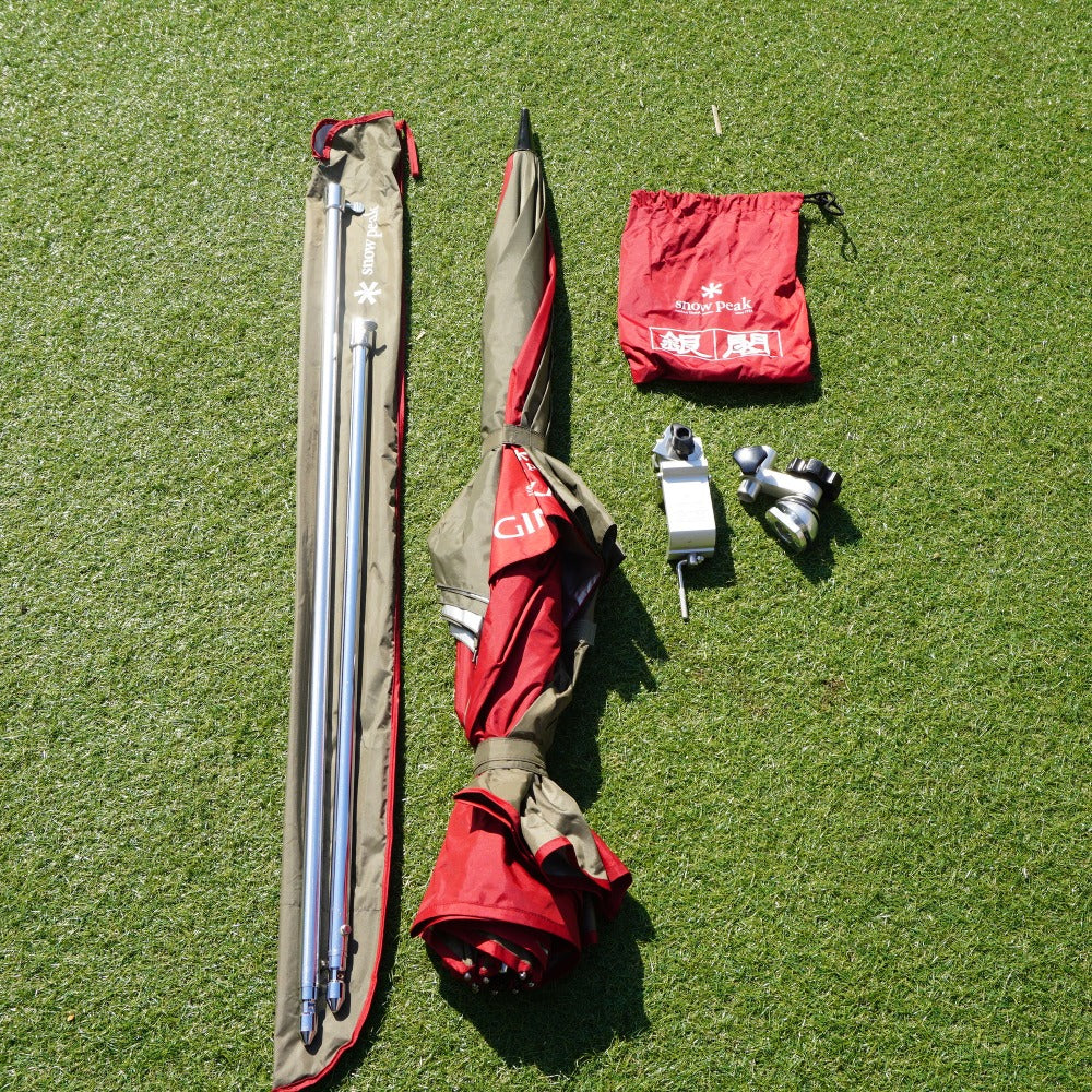 商品説明 | スノーピークの銀閣へらパラソルと専用の万力(G-220)のセットです。 へら釣りに便利で、裏面は遮光コーティングが施されています。 |