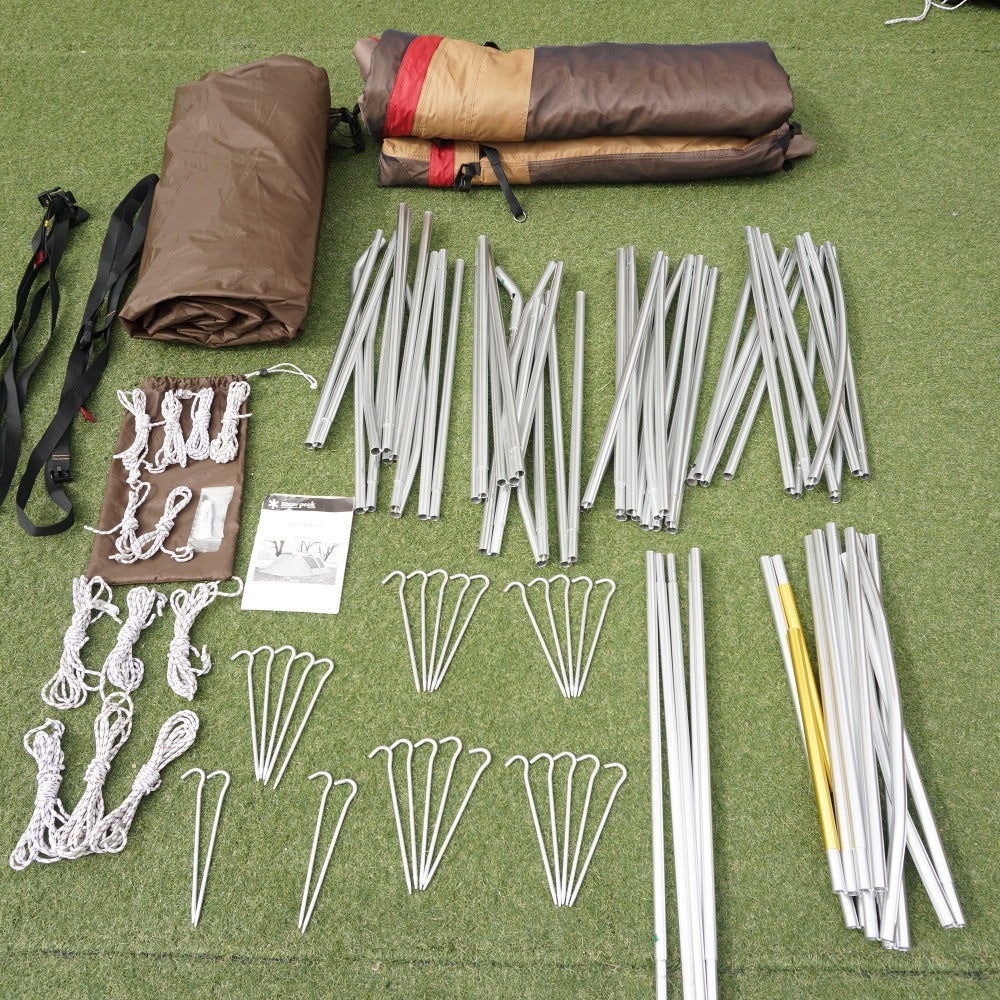 付属品 収納ケース セーフティーベルト、ペグケース、ロープ12本(3.5m×6/2.5m×4/1.5m×2)、シームグリップ剤、説明書、ペグ29本