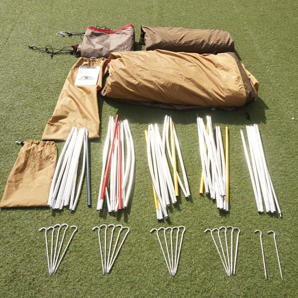 付属品 収納ケース ルーフシート、説明書、フレームケース、ペグケース、ジュラルミンペグ22本、ロープ16本(2.5m×8/1.5m×8)