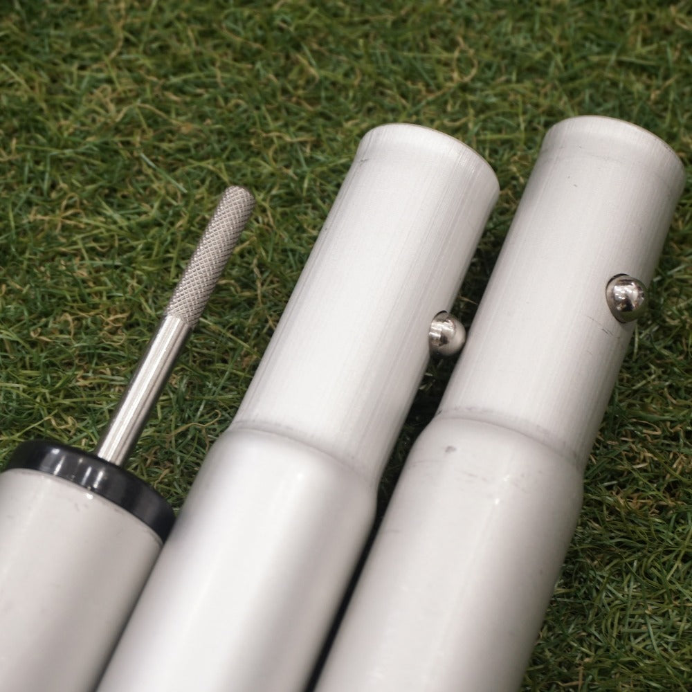 先端部のピンには、タープのグロメットやロープ抜けの防止用にローレット加工が施されています。