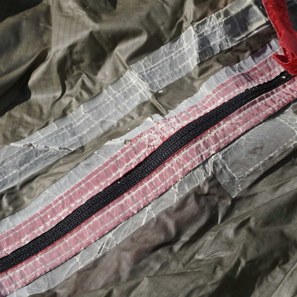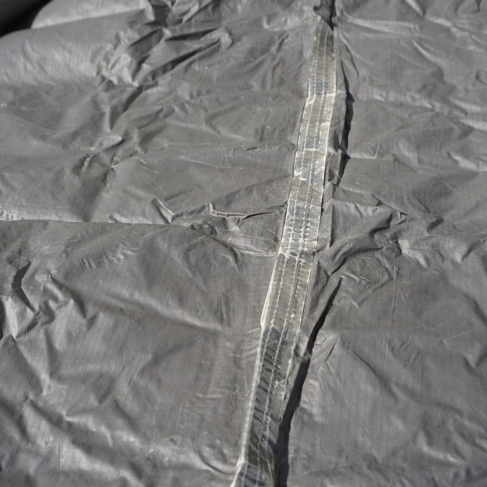 古いアイテムのため、シームテープがポロポロ崩れる箇所がございます。 シート自体のベタつきは少ないですが、劣化による臭いは若干ございます。 フレームの変形や使用に支障のある穴、破れなどは見当たりません。 |