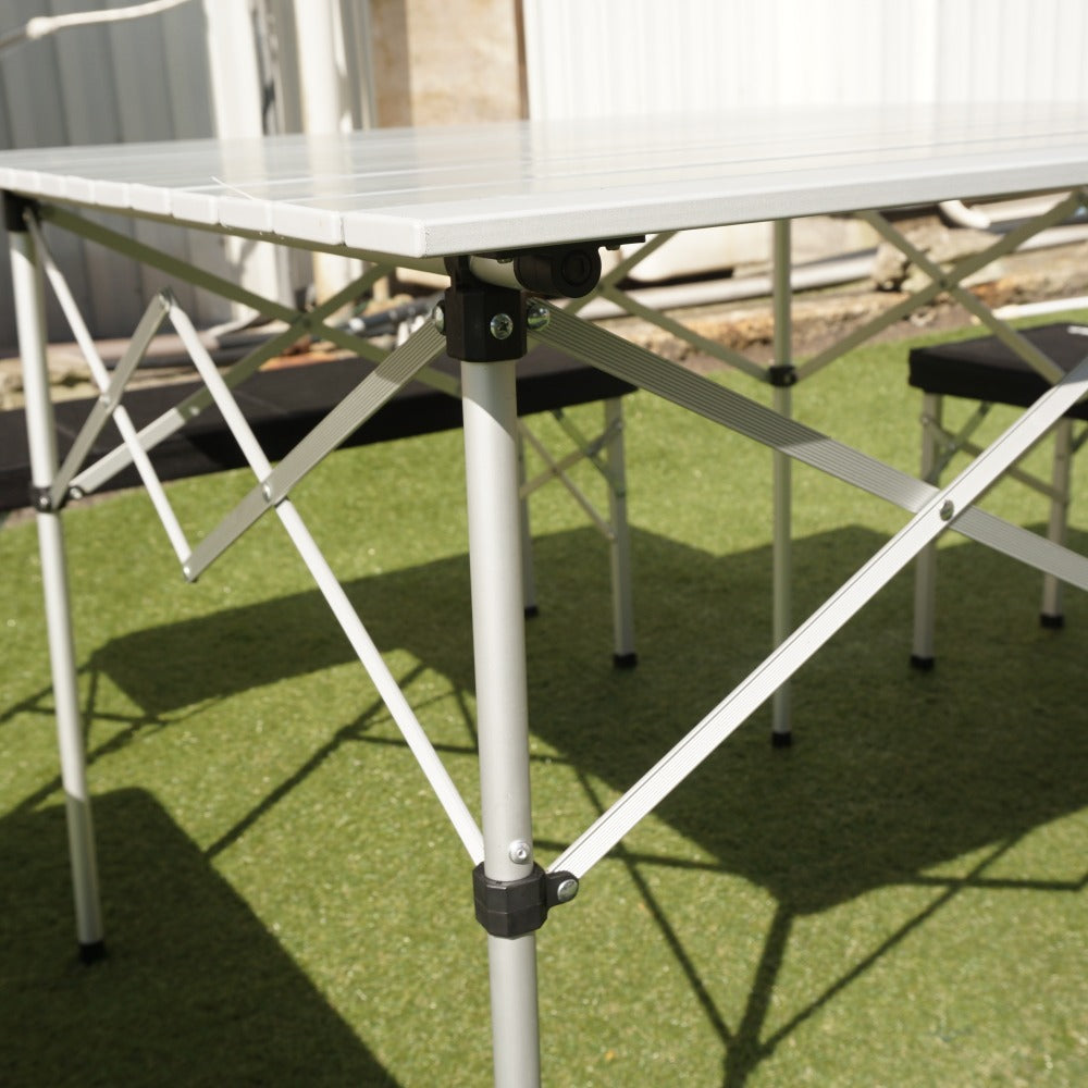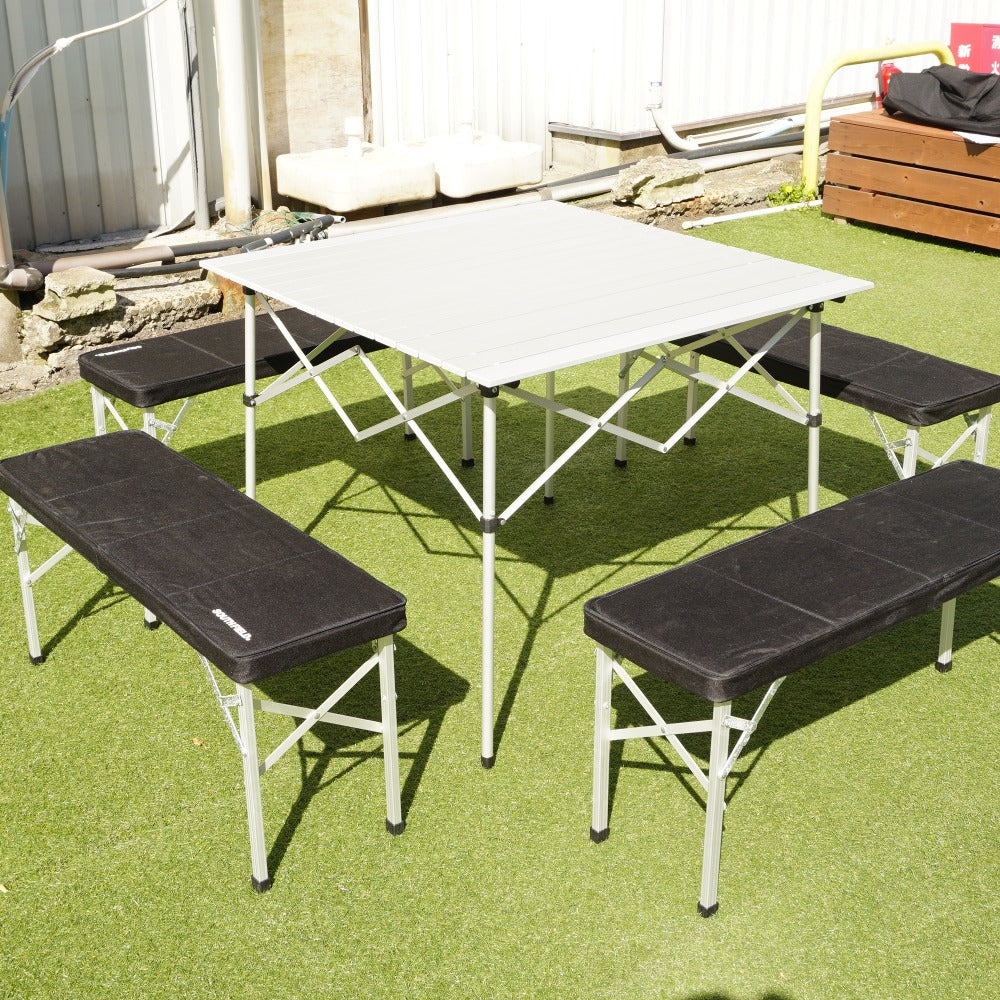 イスの脚にある留め具部分に、カビ汚れによる劣化があり、 少し折り畳みがしづらくなっております。 テーブルの天面などには目立った傷や汚れはございません。 |