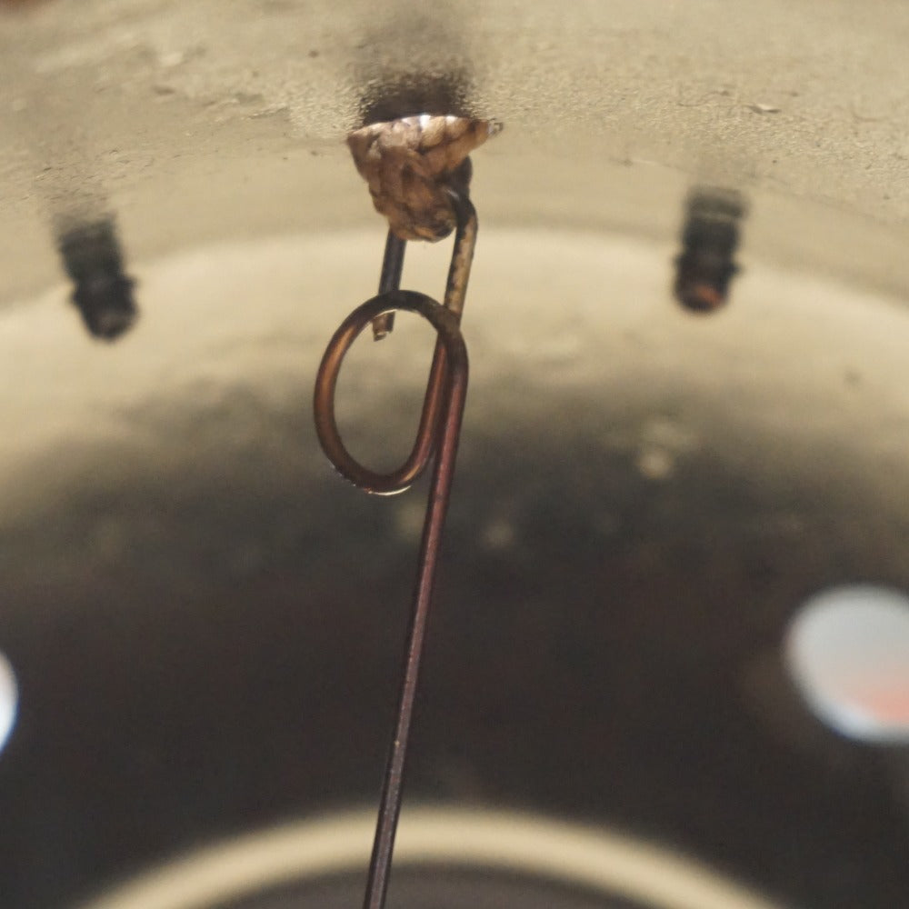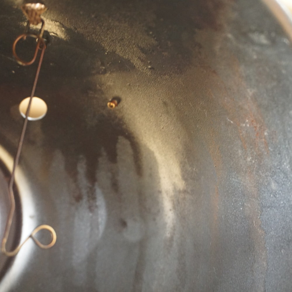 上部の耳付近にある紐に焦げ跡と、内側に使用感はございますが、 外側に目立った傷や汚れなどはございません。 |