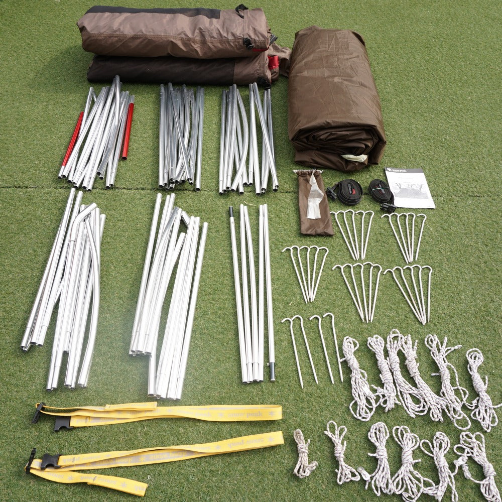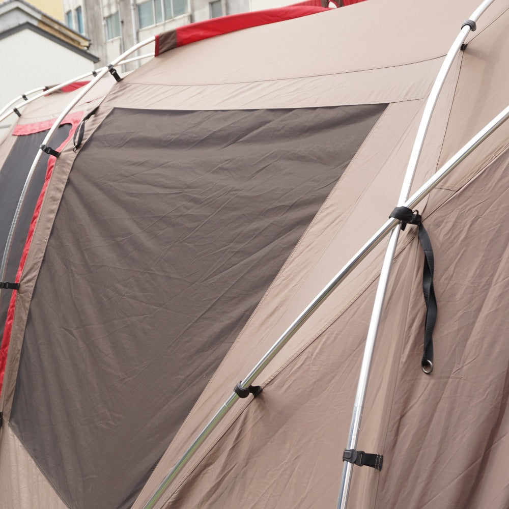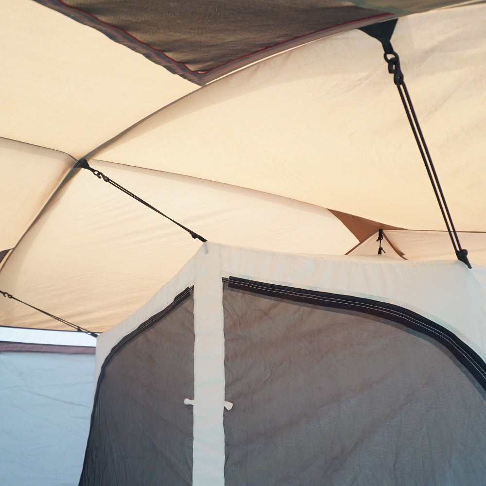 付属品 | 収納ケース フレームケース、インナーテント、説明書、セイフティーベルト、ペグケース、シームグリップ剤、ペグ29本、ロープ12本(3.5m×6/2.5m×4/1.5m×2)、コンプレッションベルト2本 |