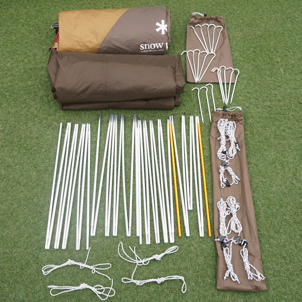 付属品 | 収納ケース ペグケース、ジュラルミンペグ18本、フレームケース、自在付ロープ8本(二又用リング付1.9m×2本、二又用リング付1.4m×2本、2.5m×2本、0.7m×2本) |