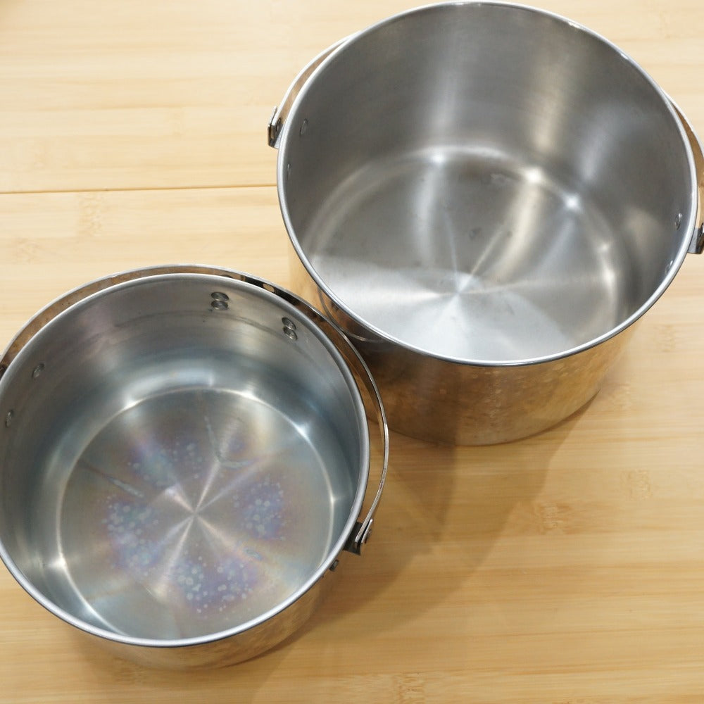 オールインワンクッカーで、焚火や炭火などの強力な火力にも耐えられるステンレス製クッカーです。