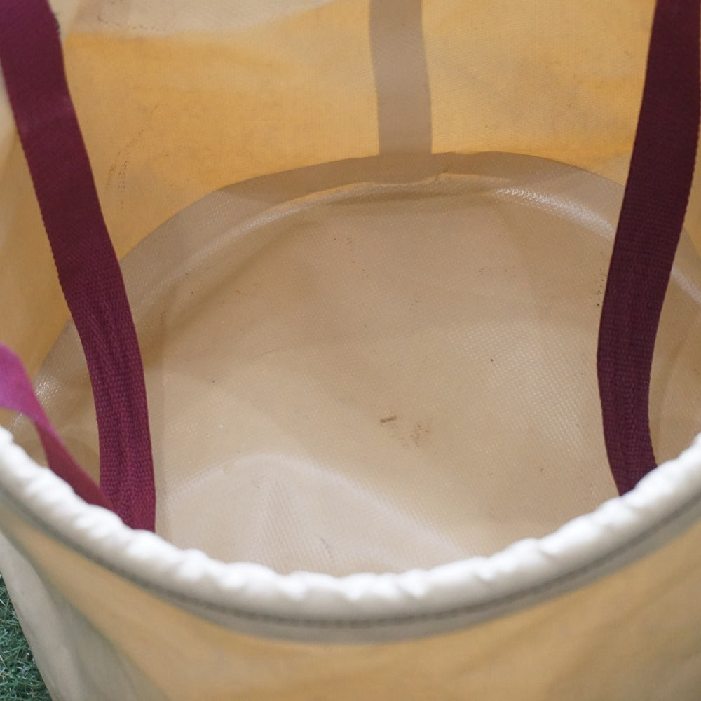 使用感があり汚れなどもございます。 底部には一部ほつれもみられますが、水漏れはありませんでした。 タグの裏面に前所有者の名前が記入してあったため黒く塗りつぶしてあります。 |