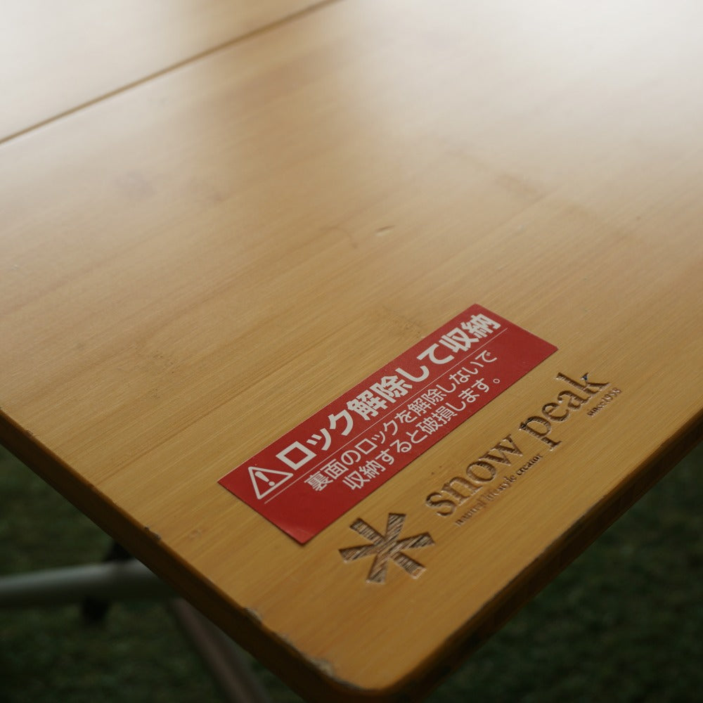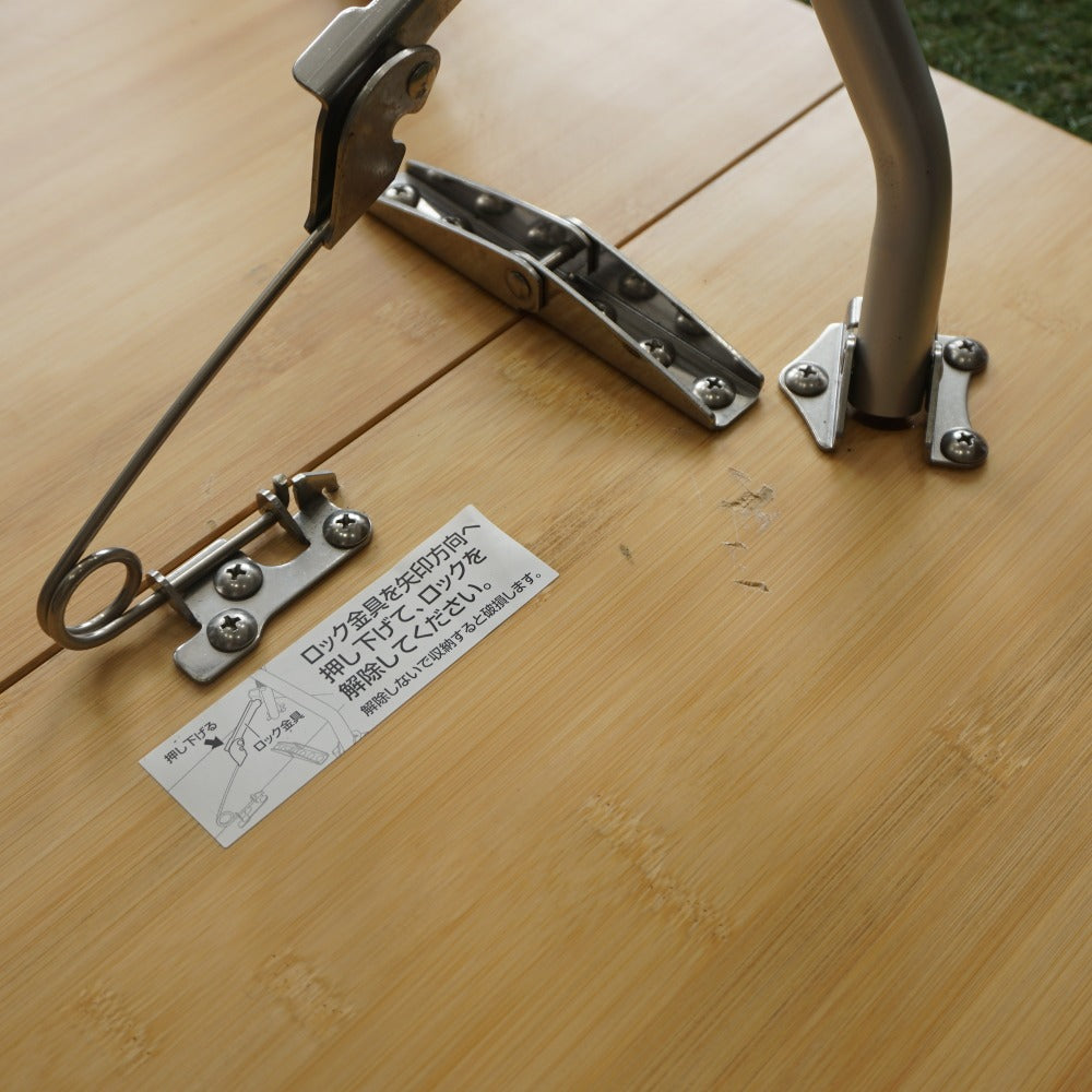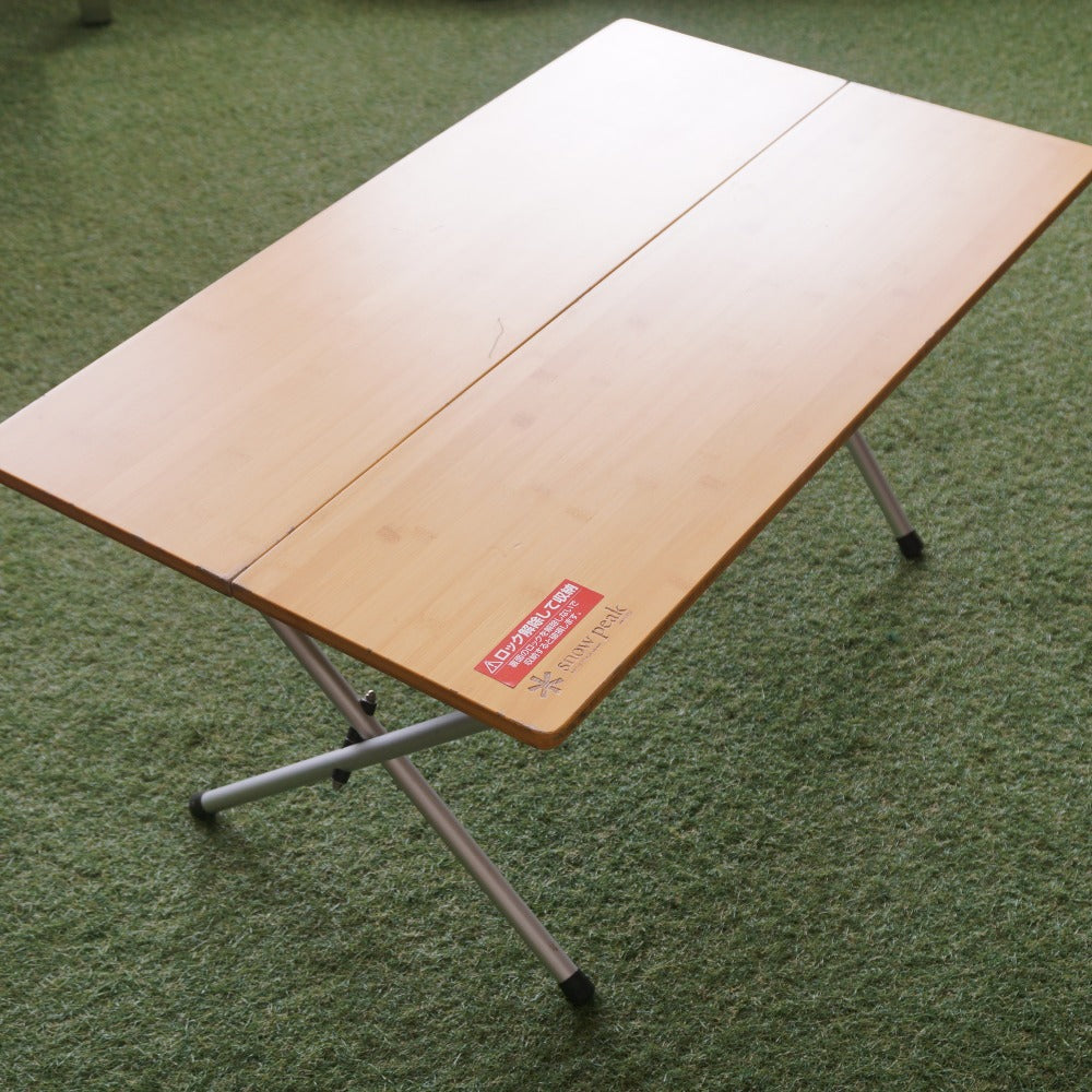 商品説明 | 折り畳まれた2枚の天板を開くと脚部が中から現れるワンアクションセッティングです。 地上高40cmのロースタイルに最適な高さとなります。 ジカロテーブルやIGTなどとも相性が抜群です。 材質:天板/竹集成材 重量:5.5kg 展開サイズ:50×85×40cm 収納サイズ:25×85×5cm 現行品の1世代前の製品となります。 |