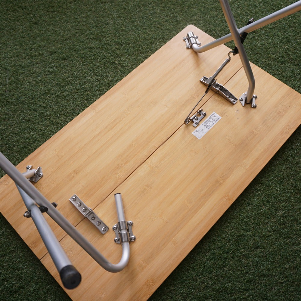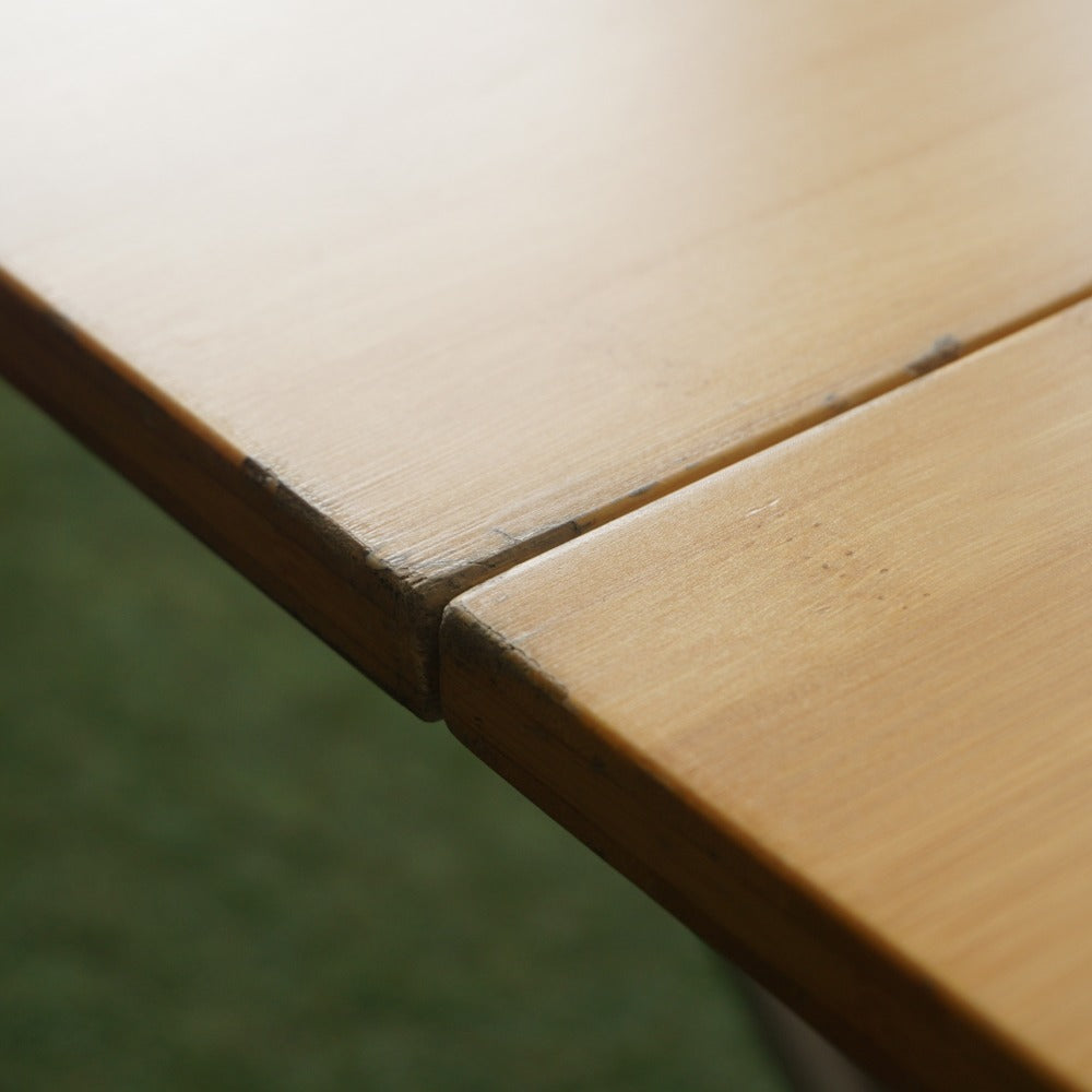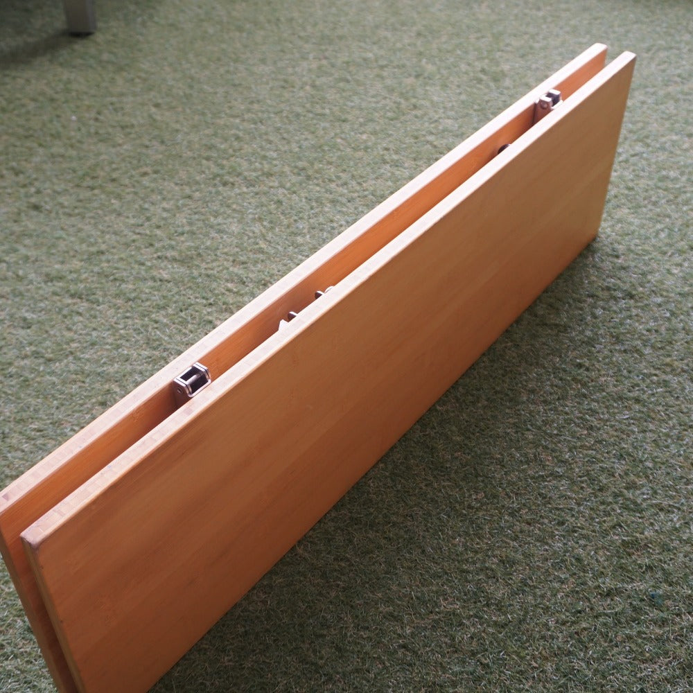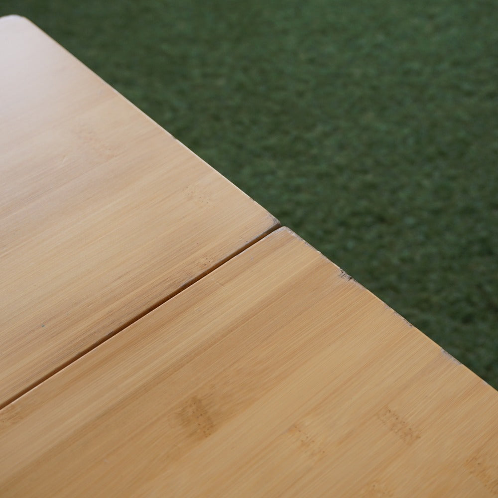 商品説明 | 折り畳まれた2枚の天板を開くと脚部が中から現れるワンアクションセッティングです。 地上高40cmのロースタイルに最適な高さとなります。 ジカロテーブルやIGTなどとも相性が抜群です。 材質:天板/竹集成材 重量:5.5kg 展開サイズ:50×85×40cm 収納サイズ:25×85×5cm 現行品の1世代前の製品となります。 |
