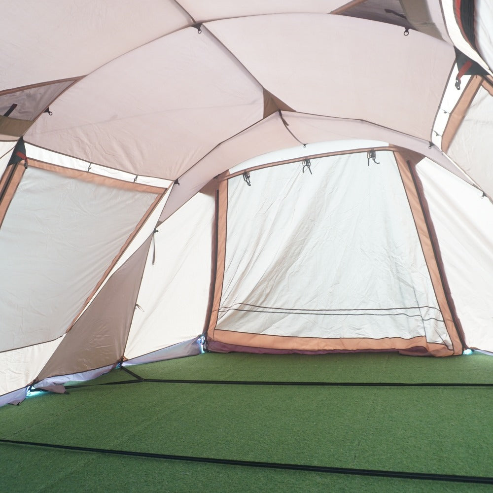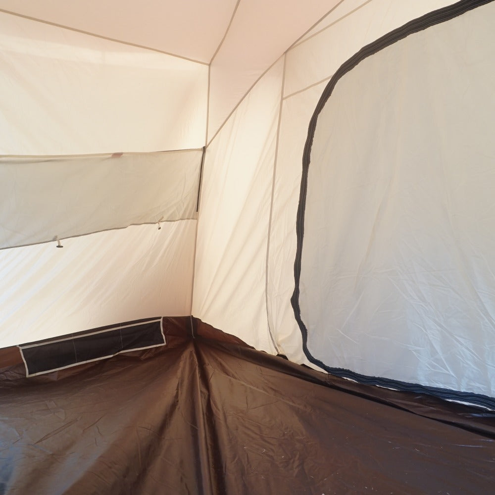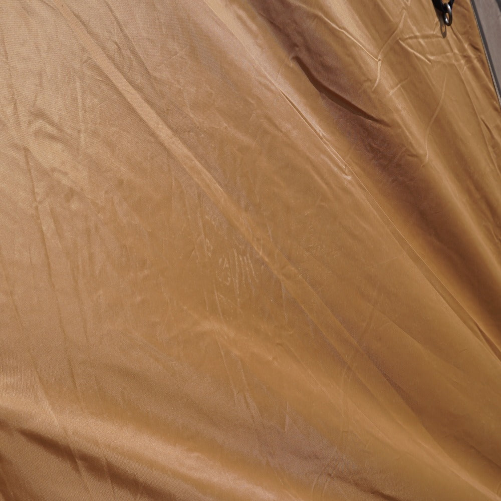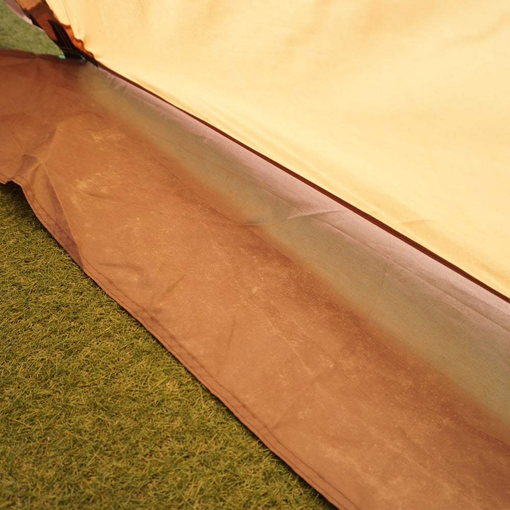 インナーテントのボトムやシェルターの側面・スカート部に薄い土汚れがあり、 フレームを通すスリーブ表面やシェルター内側の天井に、 生地劣化による薄い汚れはございますが、 フレームの変形やベタツキなどはなく、当店にて設営も確認できました。 |