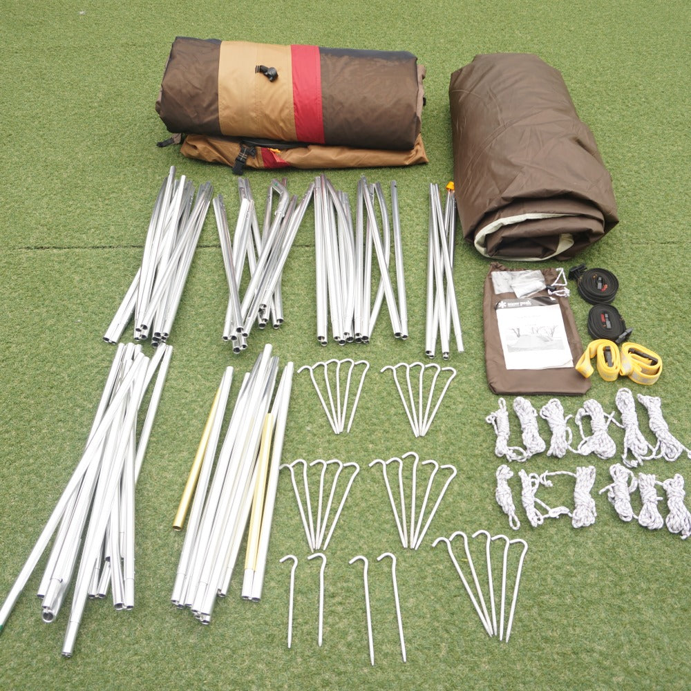 付属品 | 収納ケース フレームケース、ペグケース、シームグリップ剤、説明書、セーフティーベルト2本、コンプレッションベルト2本、自在付きロープ12本(1.5m×2/2.5m×4/3.5m×6)、ジュラルミンペグ29本(※内2本短いものがあります) |