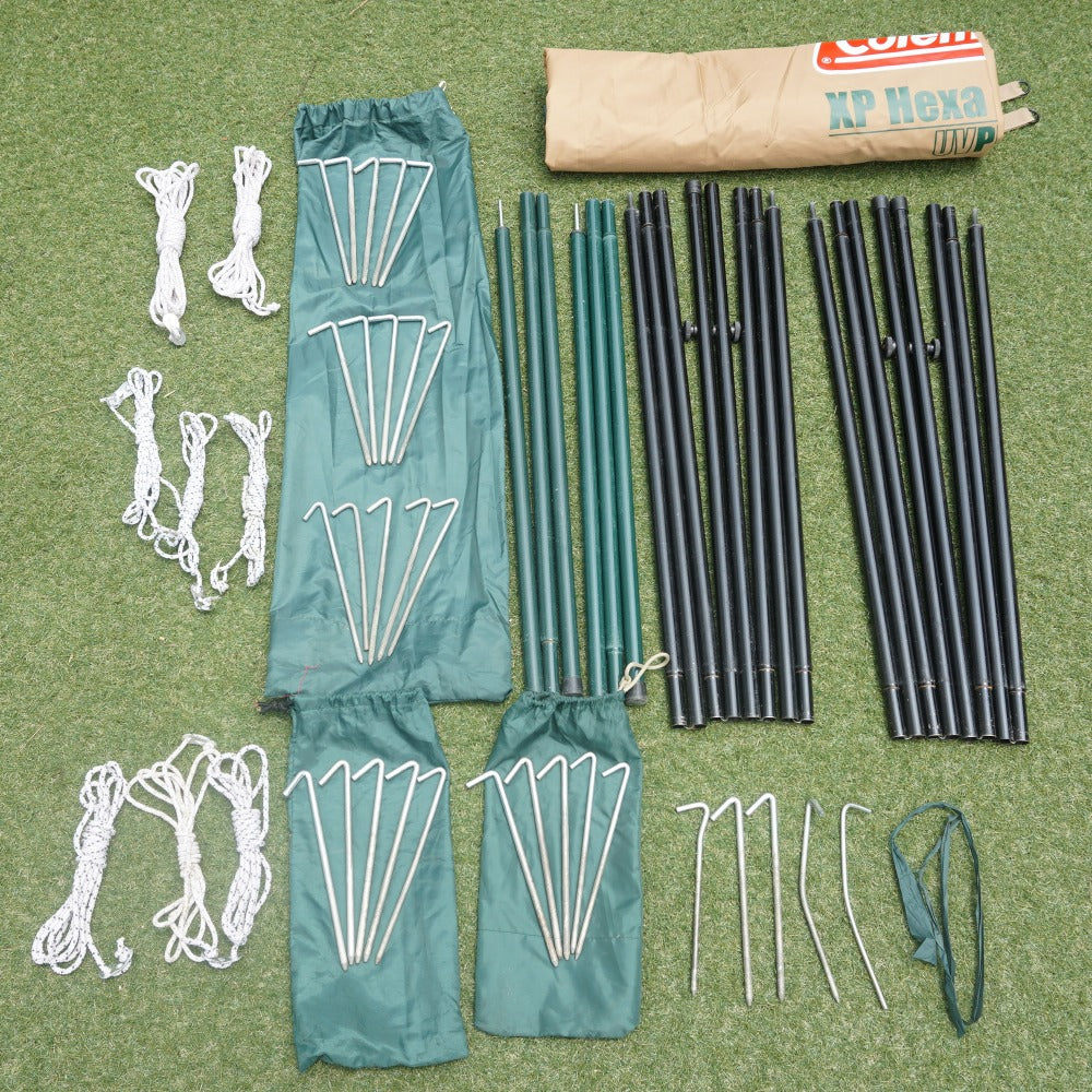 ポールやペグ、ロープに土汚れなど使用感はございますが、
