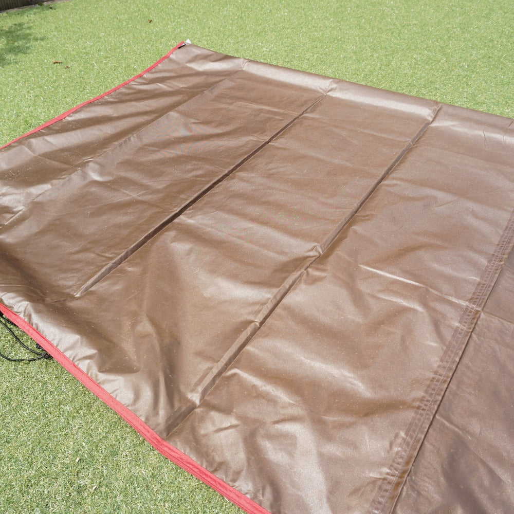 グランドシートの裏面に少しベタつきがございますが、目立った汚れや破れなどはなく、 試し張り含め2回程度の使用のため、状態は良好です。 |
