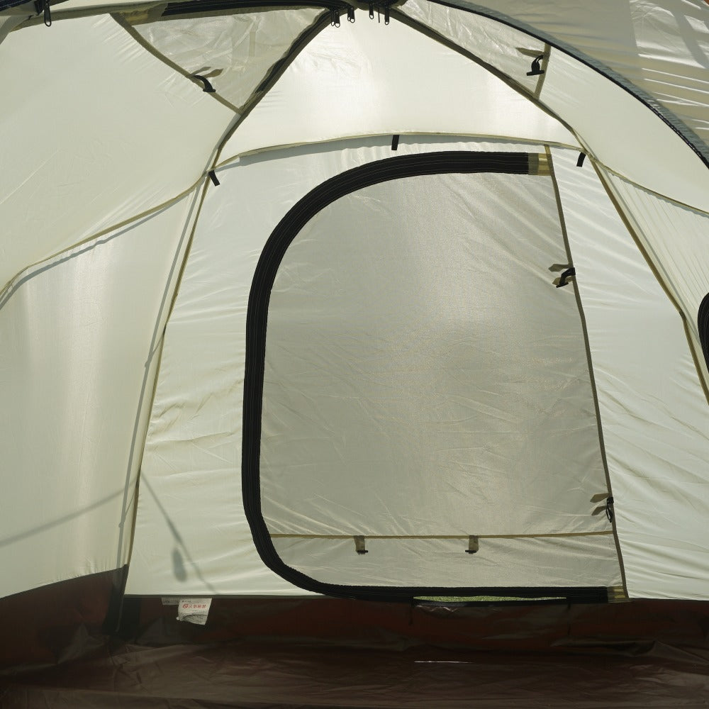 付属品 | 収納ケース 説明書、ライナーシート、フレームケース、シームグリップ剤、リペアパイプ、ジュラルミンペグ22本、自在付ロープ8本(二又用5m×2/3m×4/2m×2)、ペグケース |