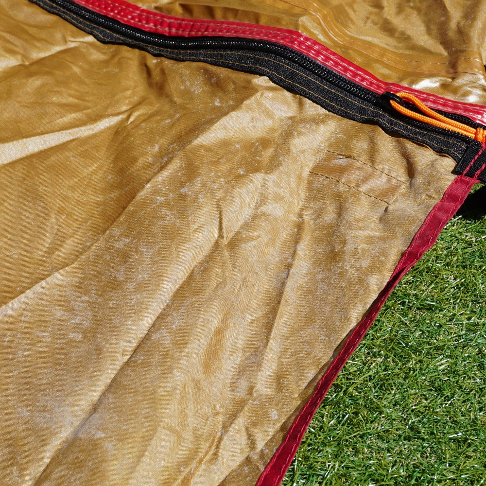 フライシート:ベタツキありますが設営が困難なほどではありません。 インナーテント:ベタツキはありませんが、フロア部分が加水分解による白濁がございます。 その他汚れ等はございます。 |