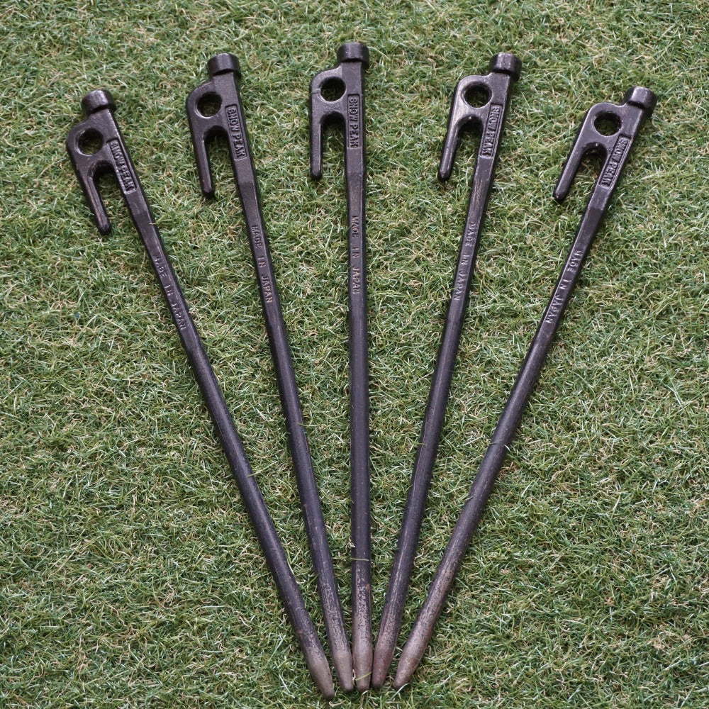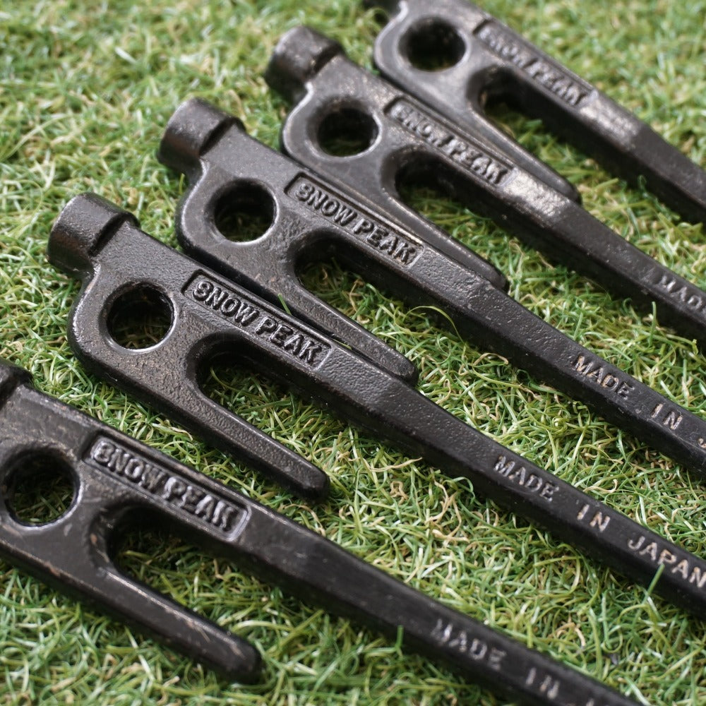 商品説明 | スノーピーク(snowpeak)の定番鍛造ペグ。 ソリッドステーク30/R-103 5本セットです。 ・材質:S55Cスチール(黒電着塗装) ・サイズ:300mm (ヘッド部/φ15mm、打ち込み部/φ8mm) |