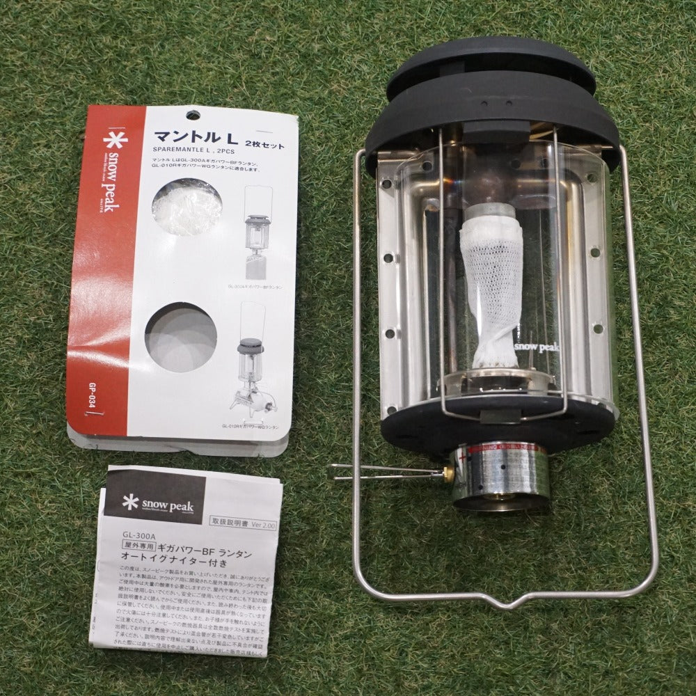 商品説明 | スノーピーク(snpwpeak)の大型ガスランタン、ギガパワー BFランタン/GL-300A。 オートイグナイタ付きです。 遠くからでも自分のサイトが分かる170W相当の明るさです。 |