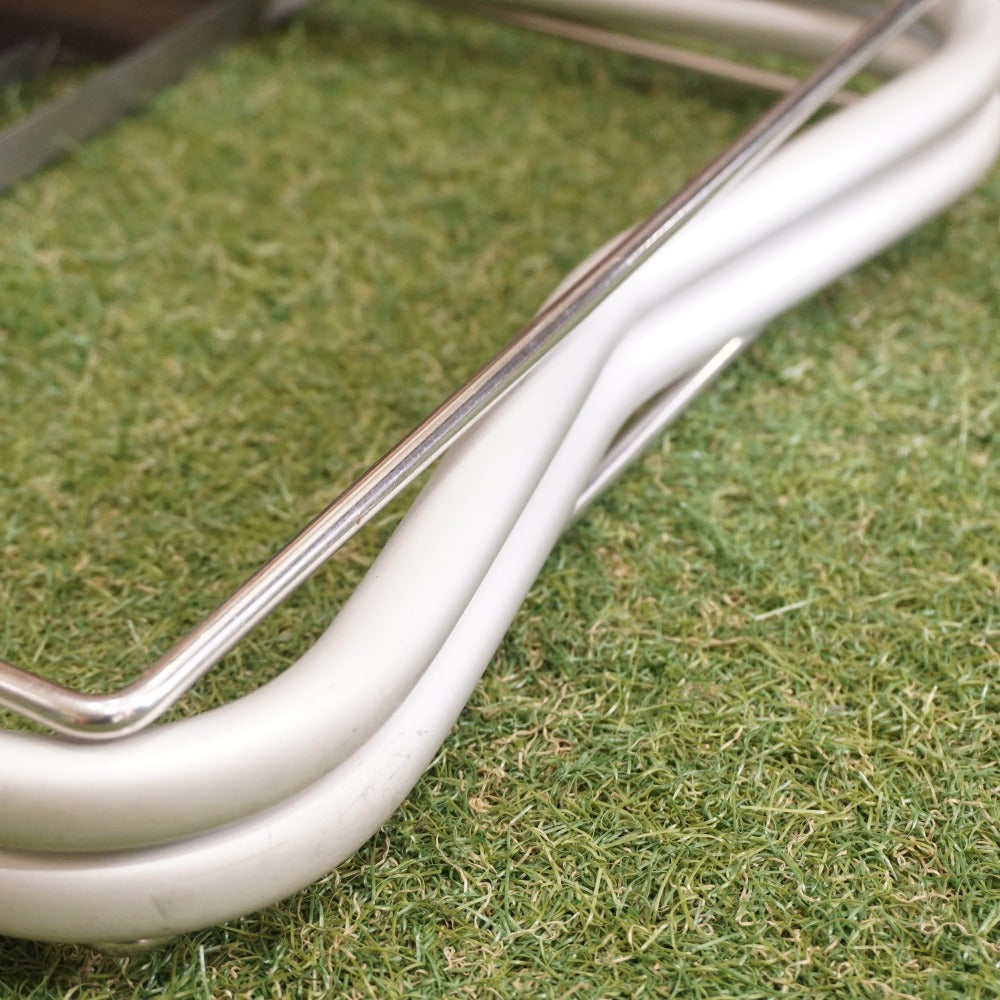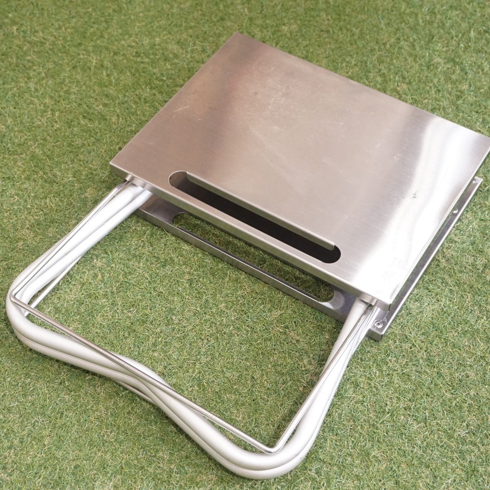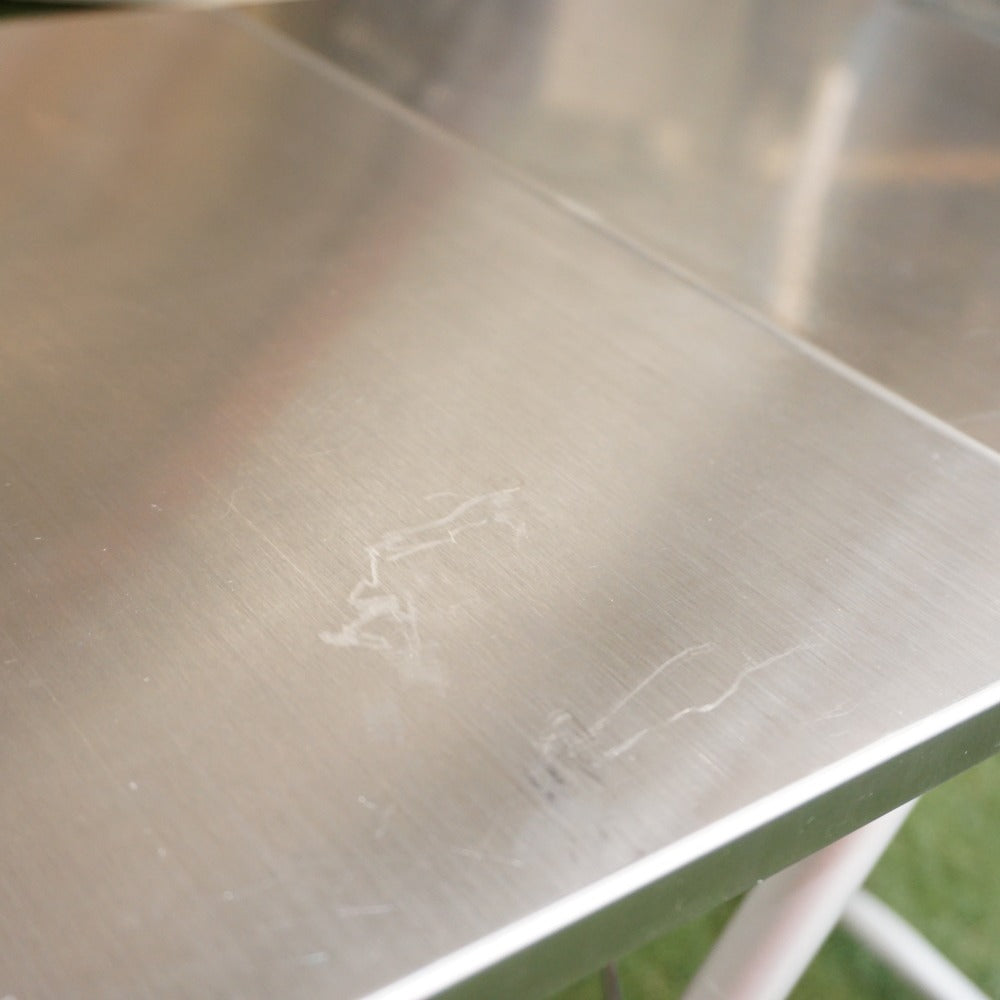 商品説明 | 焚火の時間に欠かせない、タフなサイドテーブル。 天板はオールステンレスで、圧倒的に熱に強く、頑丈で、アツアツの料理が入ったダッチオーブンを置くことも可能です。 |