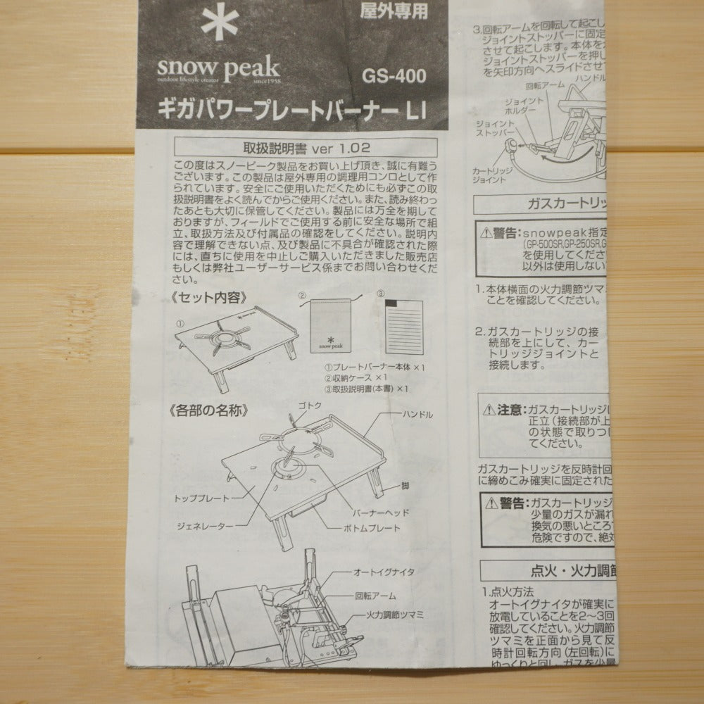 ![【点火確認済】美品 スノーピーク(snowpeak) ギガパワープレートバーナーLI GS-400 焚火台・バーナー シングルバーナー 廃盤品 IGT [送料無料]](http://shop.canvas-jp.net/cdn/shop/products/cv002148-1_{width}x.jpg?v=1633352808)