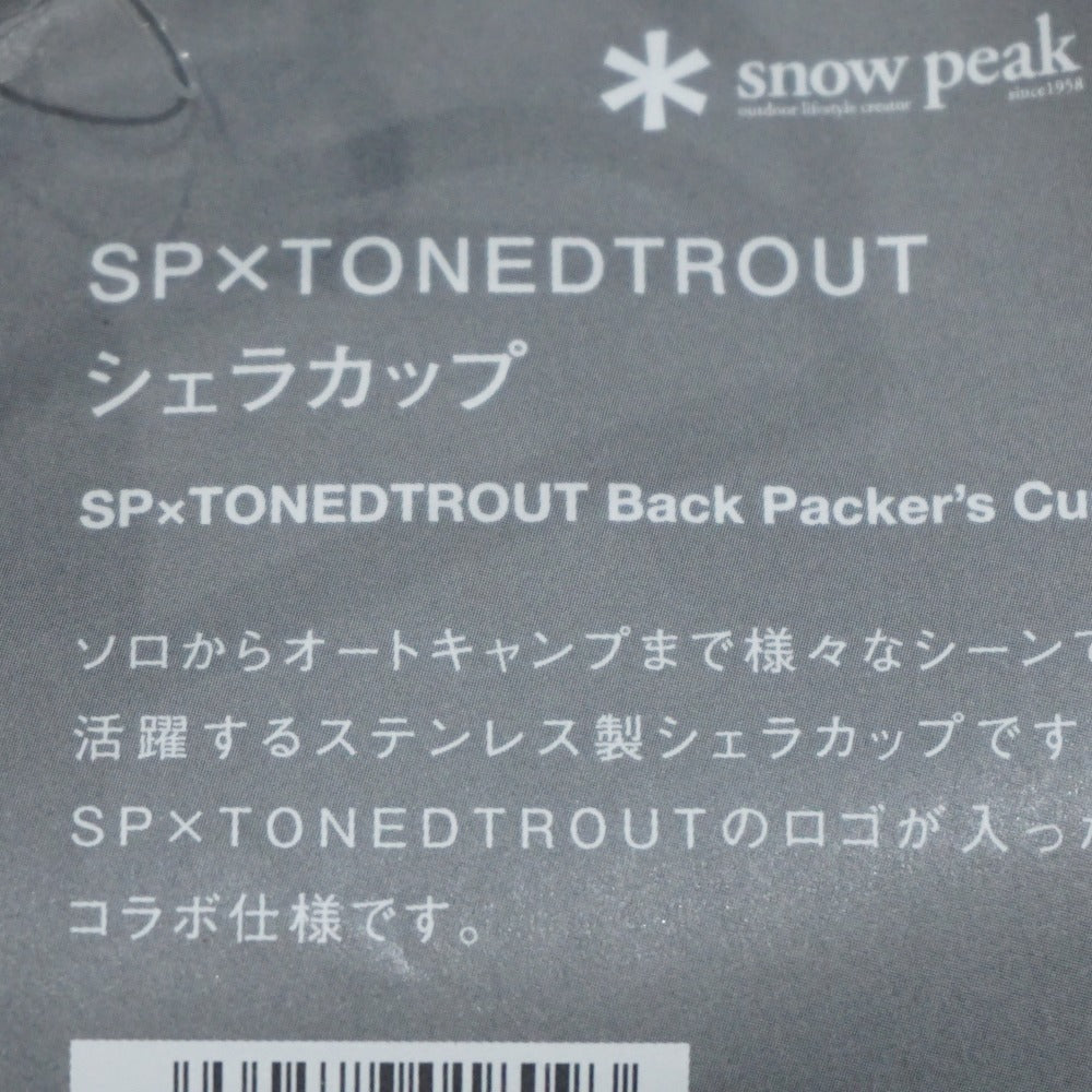 商品説明 | スノーピークのSP×TONEDTROUT シェラカップ/E-103TTです。 群馬県にあるフィッシングアパレルブランド「TONEDTROUT」との コラボレーションシェラカップです。 |