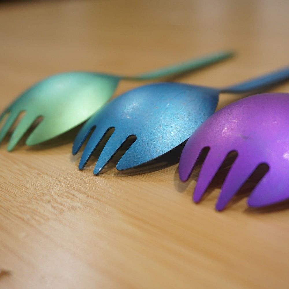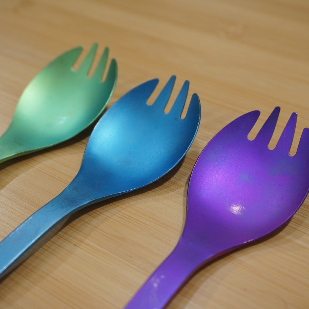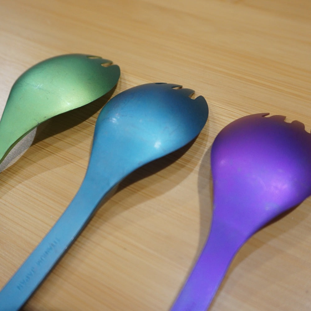 【希少・入手困難】美品 スノーピーク(snowpeak) チタン先割れスプーン 3点セット 海外限定色 SCT-004 テーブルウェア アルマイトパープル/グリーン/ブルー [送料無料] [10/13値下げ]
