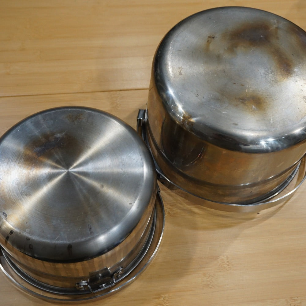 蓋にベタつきや鍋に焦げ跡など、全体的に使用感はございますが、 使用に支障となるような破損などはございません。 |