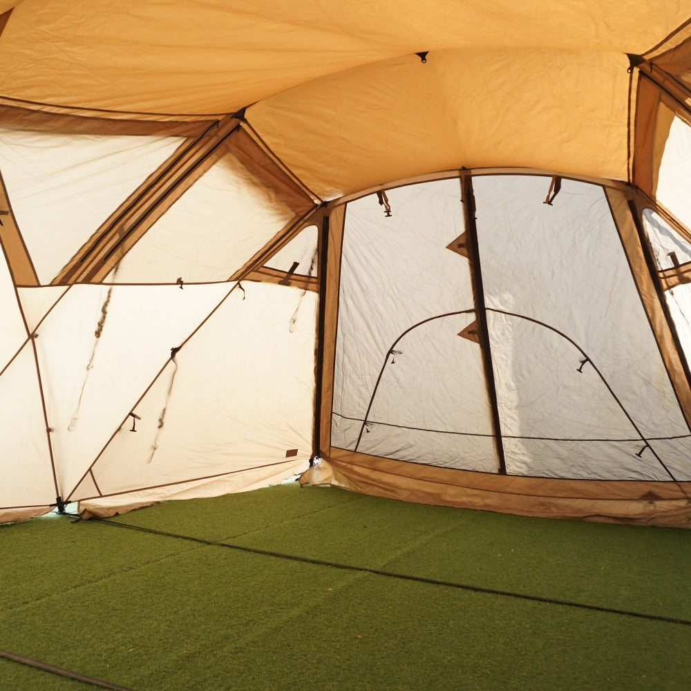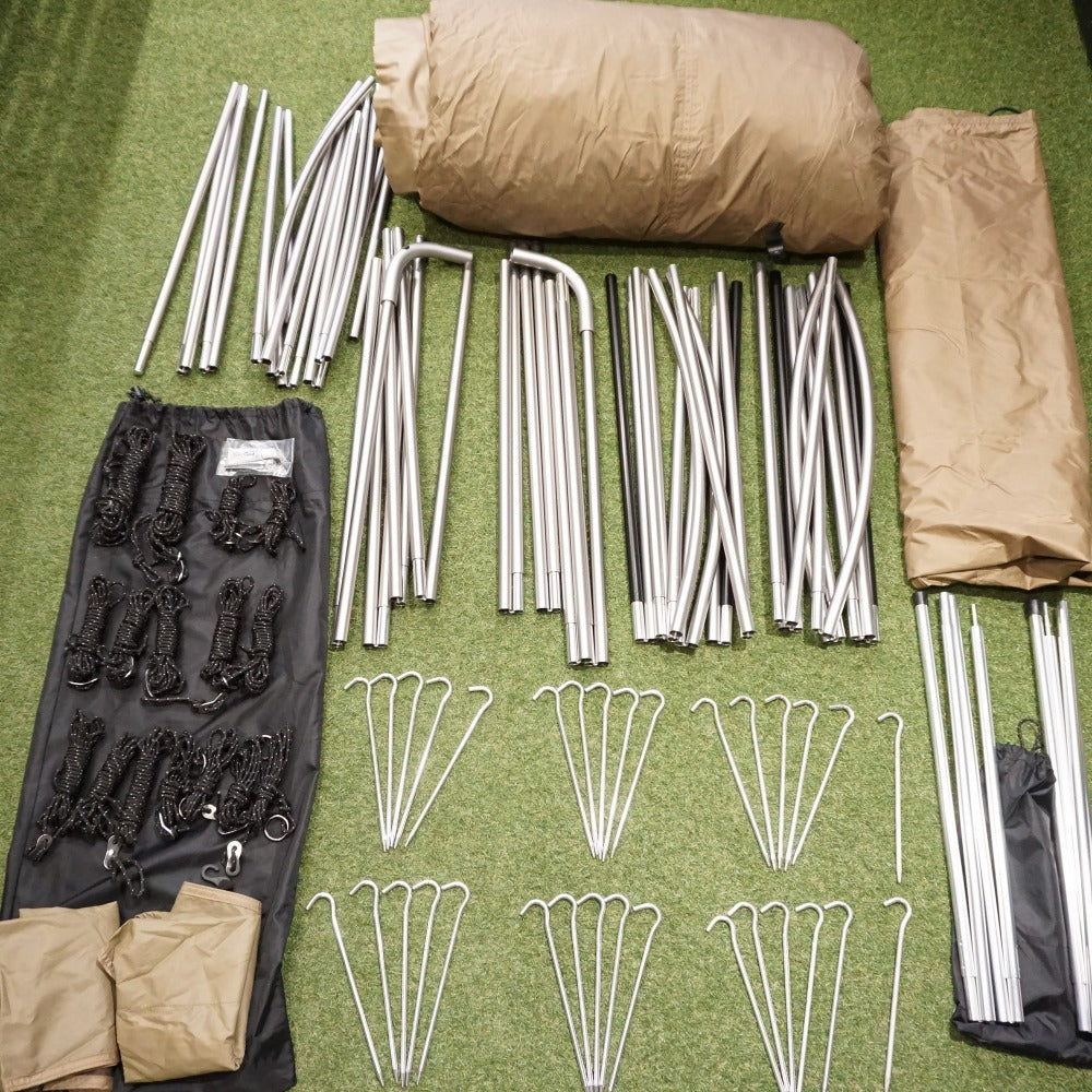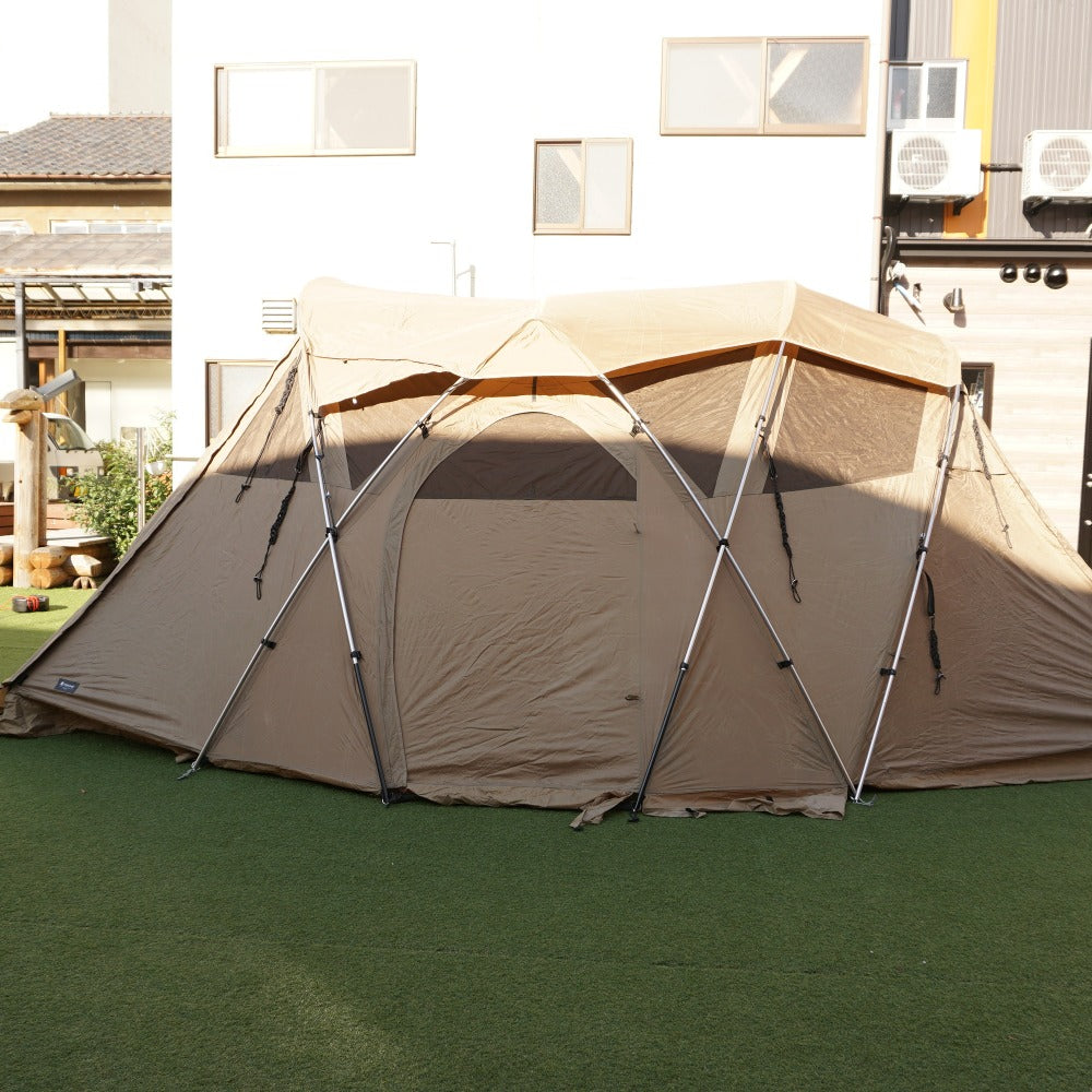 付属品 | 収納ケース フレームケース、シームグリップ剤、自在付きロープ16本(二又用7m×2/3.5m×8/2.0m×2/Oリング付2.0m×4)、三角ポケット×2、ジュラルミンペグ×32本、ペグケース、アップライトポール×2 |