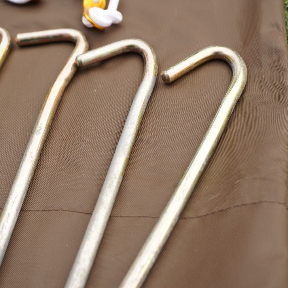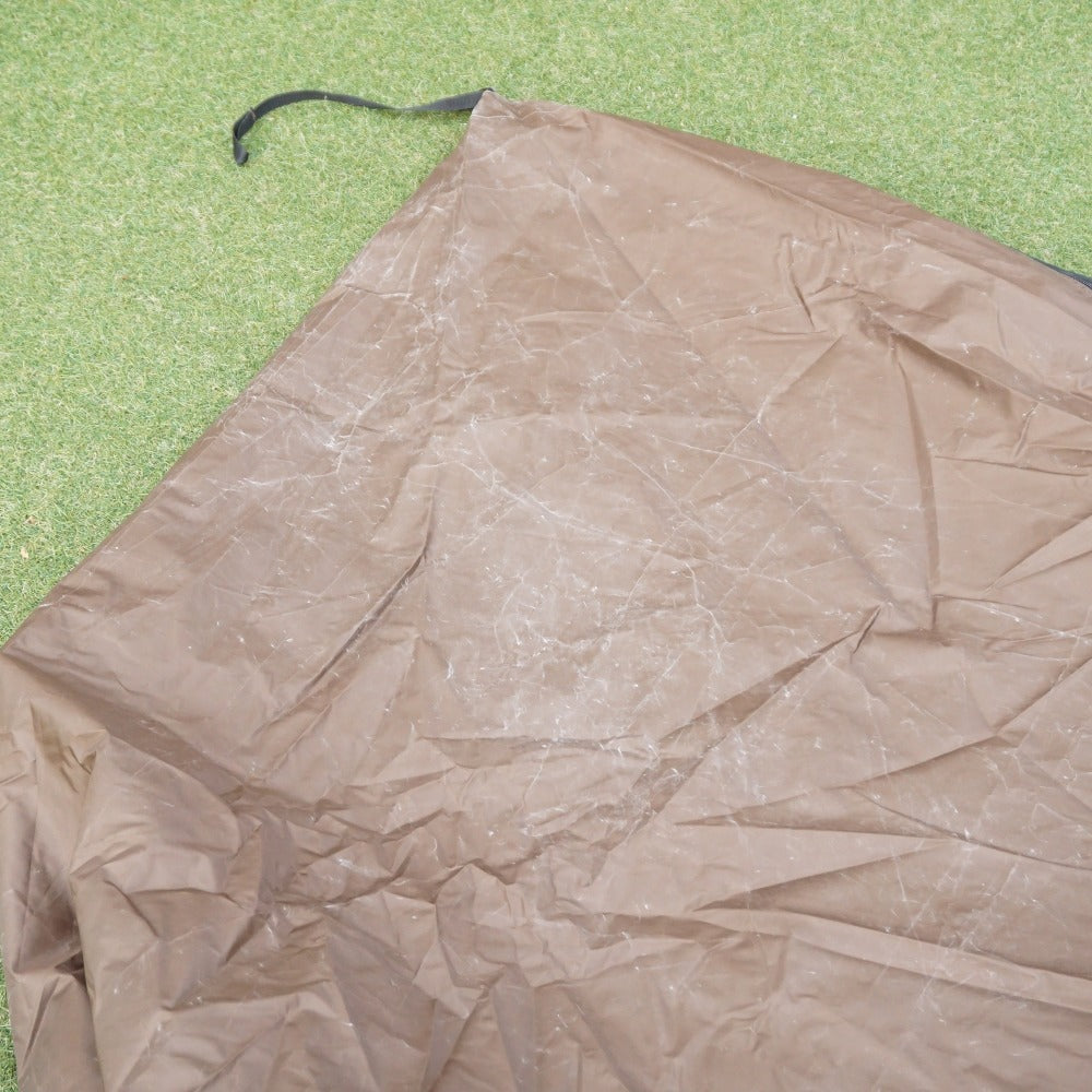ペグケースにサビのような汚れが数カ所付着しております。 また、ハーフインナーの外側の底面に、使用によるキズがあり、 ペグが二本、わずかに変形しておりますが、 シェルター本体に目立った汚れやベタつきなどはなく、状態はとても良好です。 |