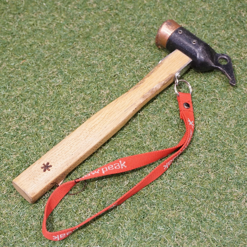 商品説明 | スノーピークのペグハンマーPro.C/N-001です。 鍛造ペグを打つために生まれたこのハンマーは、打撃部が銅ヘッドになっており、ペグダウン時の衝撃を和らげます。 銅ヘッドは交換可能です。 |