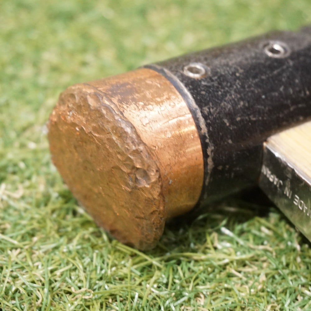 交換可能な銅ヘッドは使用により消耗が進んでいます。 また、ハンマーの持ち手部分が、使用により一部、薄く黒色に変色しておりますが、 使用に支障となるような変形などはございません。 |