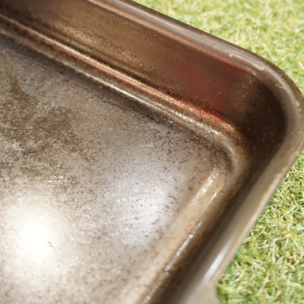 鉄板の内側に、使用による焦付きやこべりついた油汚れはございますが、 ひどいベタツキや変形などはございません。 |