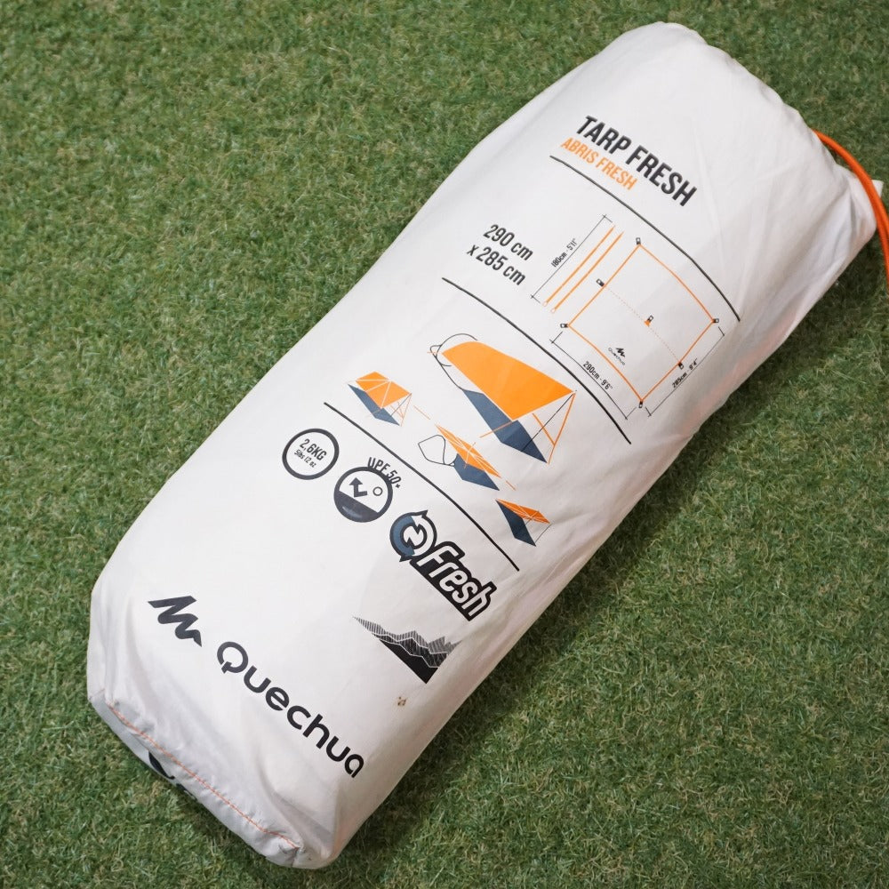商品説明 | ケシュア(Quechua)のレクタタープ、TARP FRESHです。 遮光性と遮熱性の高い、ケシュア独自の「Fresh」生地を使用しているレクタタープです。 ・サイズ:2.9m×2.85m×1.8m ※ペグは欠品しておりますので、別途ご用意くださいませ。 |